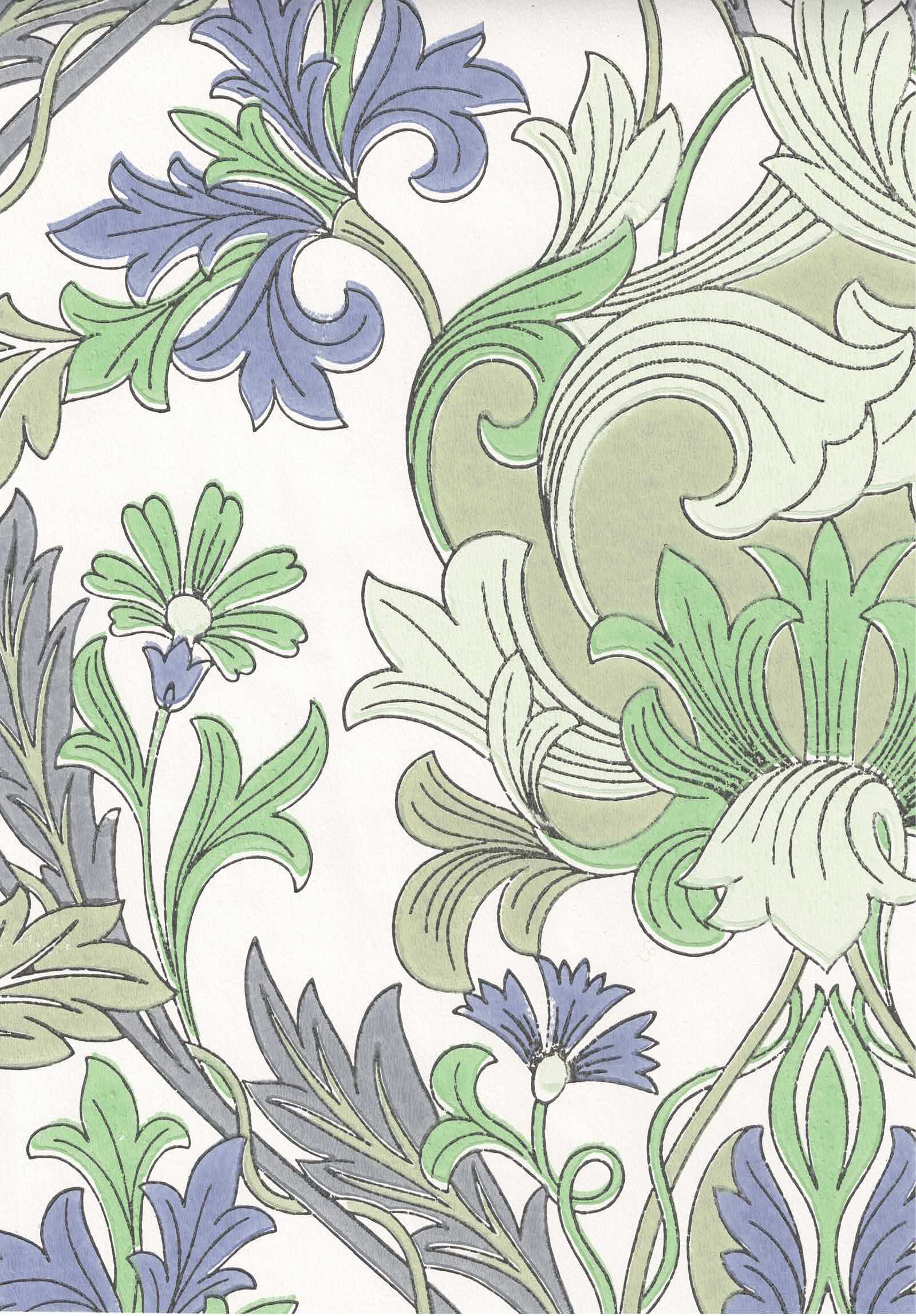 Muotoilija, taidemaalari Ritva Kronlundin suunnittelema klassikkotapetti on yhtä aikaa runsaan täyteläinen ja selkeä. Ensisilmäyksellä romanttinen tapetti sopii oivallisesti myös minimalistisempaan maailmaan. Kuudesta värivaihtoehdosta on helppo verrata värin vaikutusta kuvioon. Hempeä harmaa on seesteisen rauhallinen, keltainen tuo auringon olohuoneeseesi ja intensiivinen sininen, kaikessa reippaudessaan, patistaa ylös sohvalta.