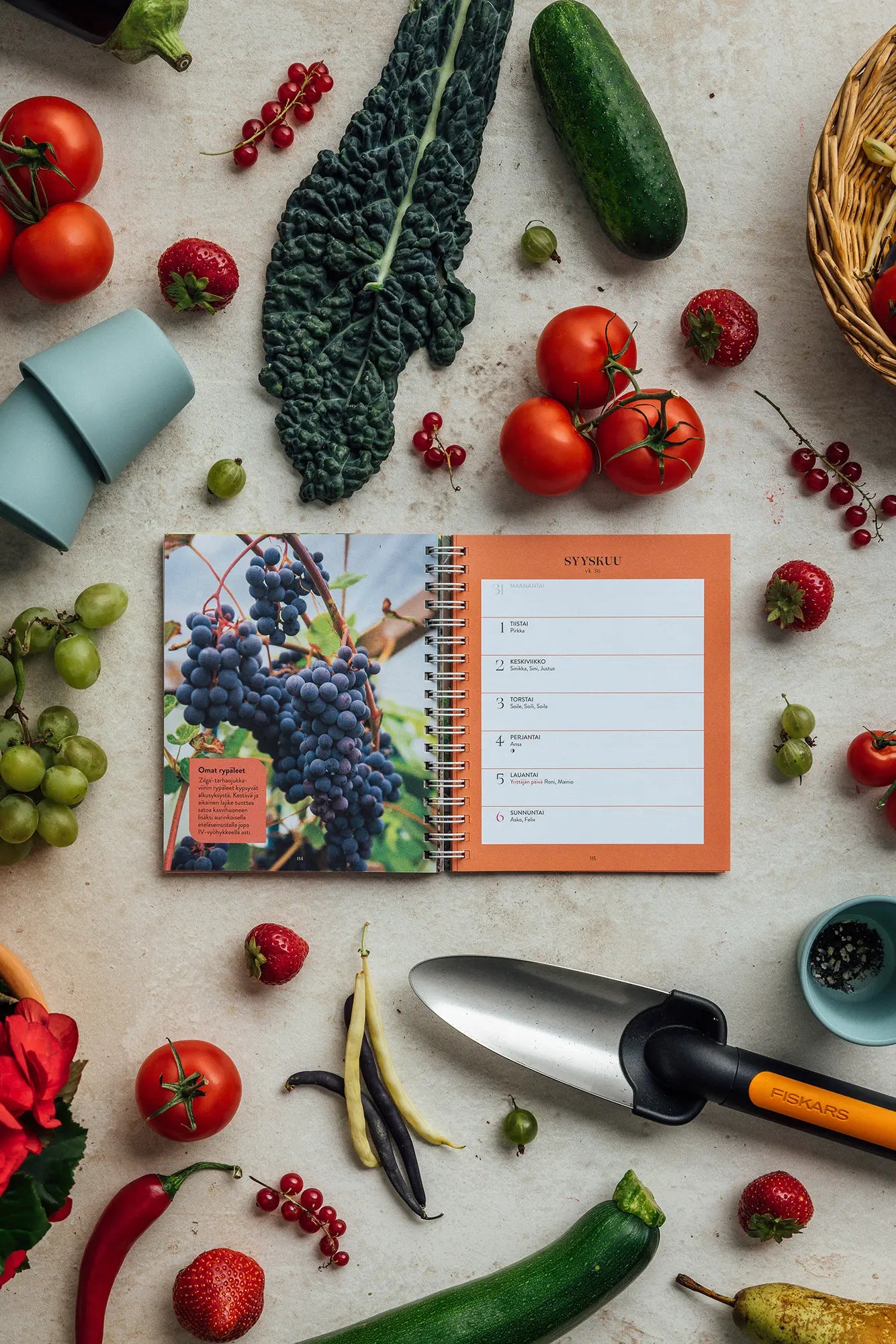 Puutarhakalenteri ei siis ole pelkkä päivyri – se on myös tiivis tietopaketti. Kalenterista löydät vinkkejä ja ideoita niin esikasvatukseen, istutukseen kuin sadonkorjuuseen, ja kaikki tarvittava tieto on koottu kätevästi yksien kansien väliin. Kompaktin kokonsa ansiosta kalenteri kulkee helposti mukana myös ruokakauppaan, jossa sesonkivinkit helpottavat kauden kasvisten valitsemista.