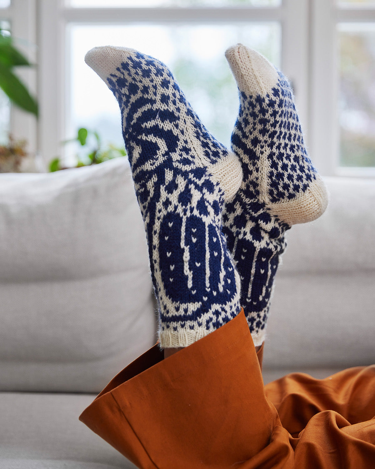 Birger Kaipiainen oli sekä muotoilija että keraamikko, mutta myös tarinankertoja – ei siis ihme, että symbolismin mestarin tuotannosta luodut neuleohjeet henkivät samaa romantiikkaa ja mystiikkaa kuin lähdeteoksensa. Rakkaat kuviot & Birger Kaipiainen on loistohankinta erityisesti hänelle, joka rakastaa pitkiä ja koristeellisia villasukkia.