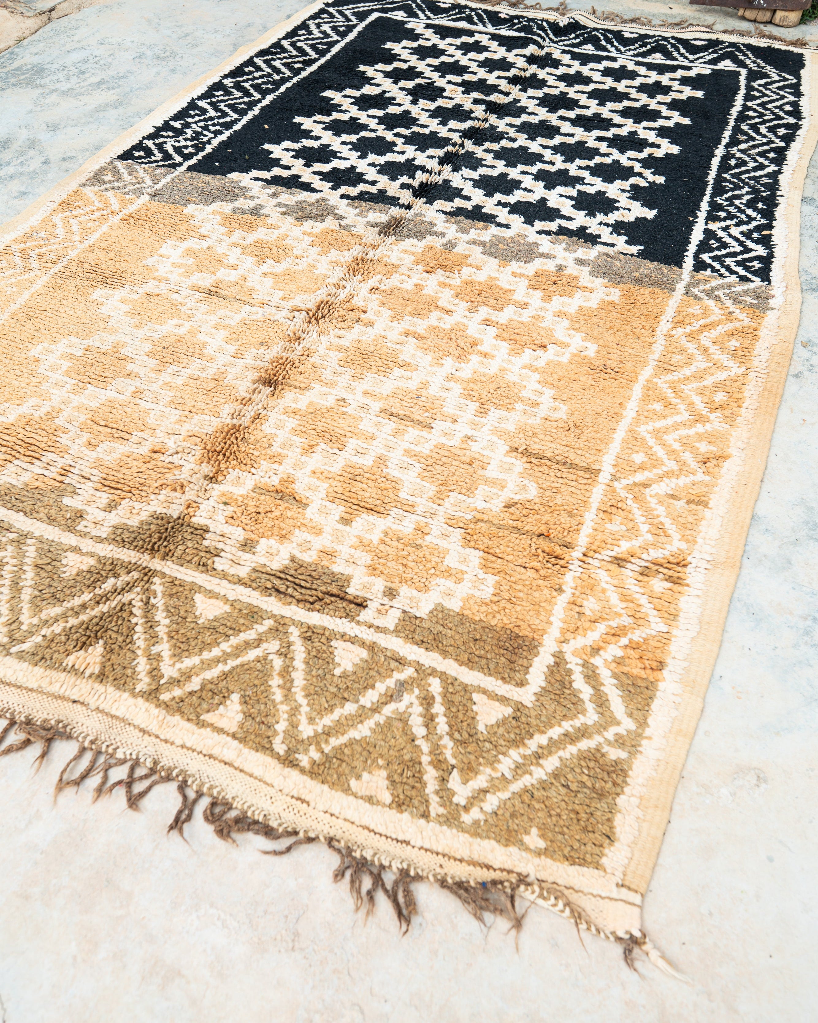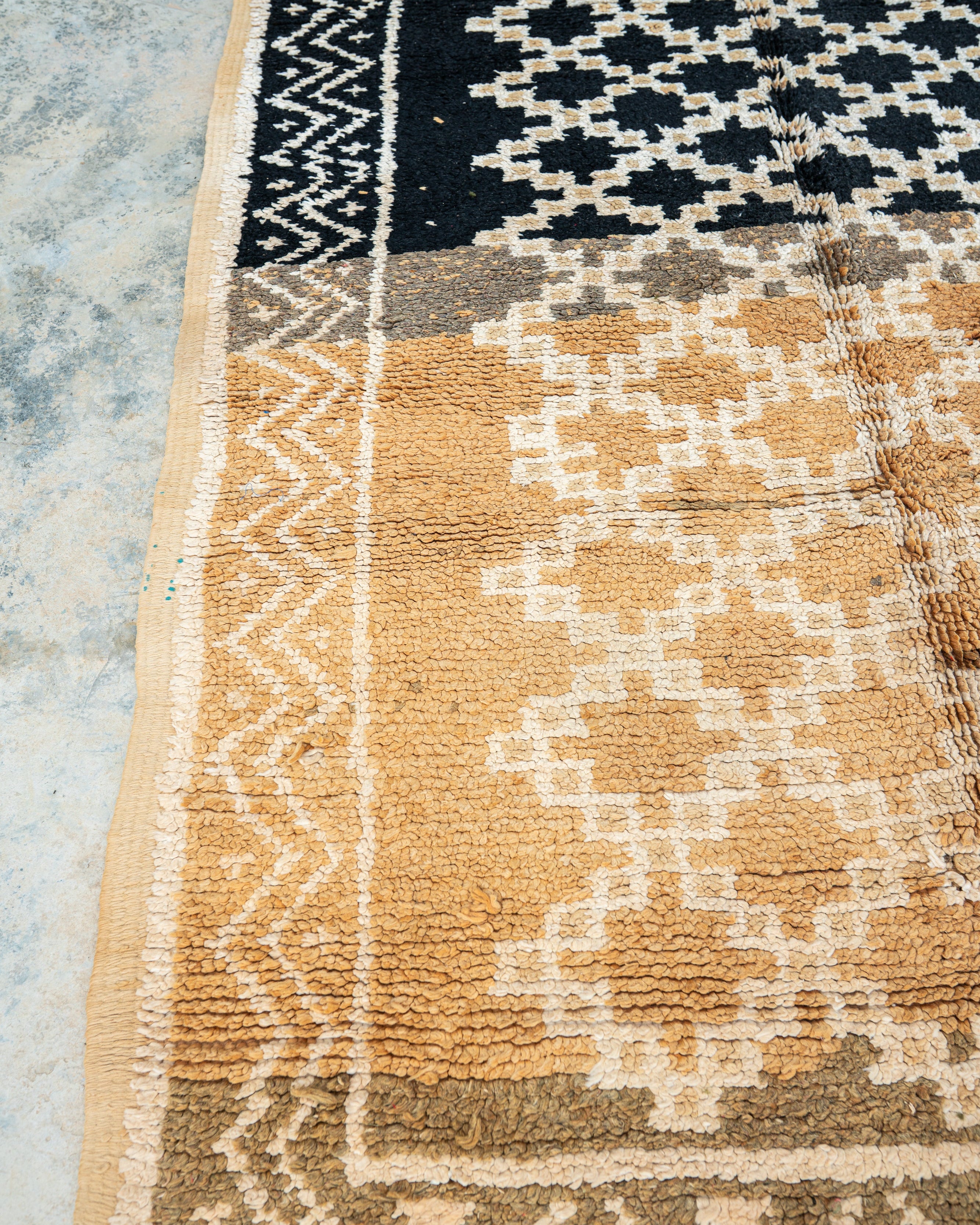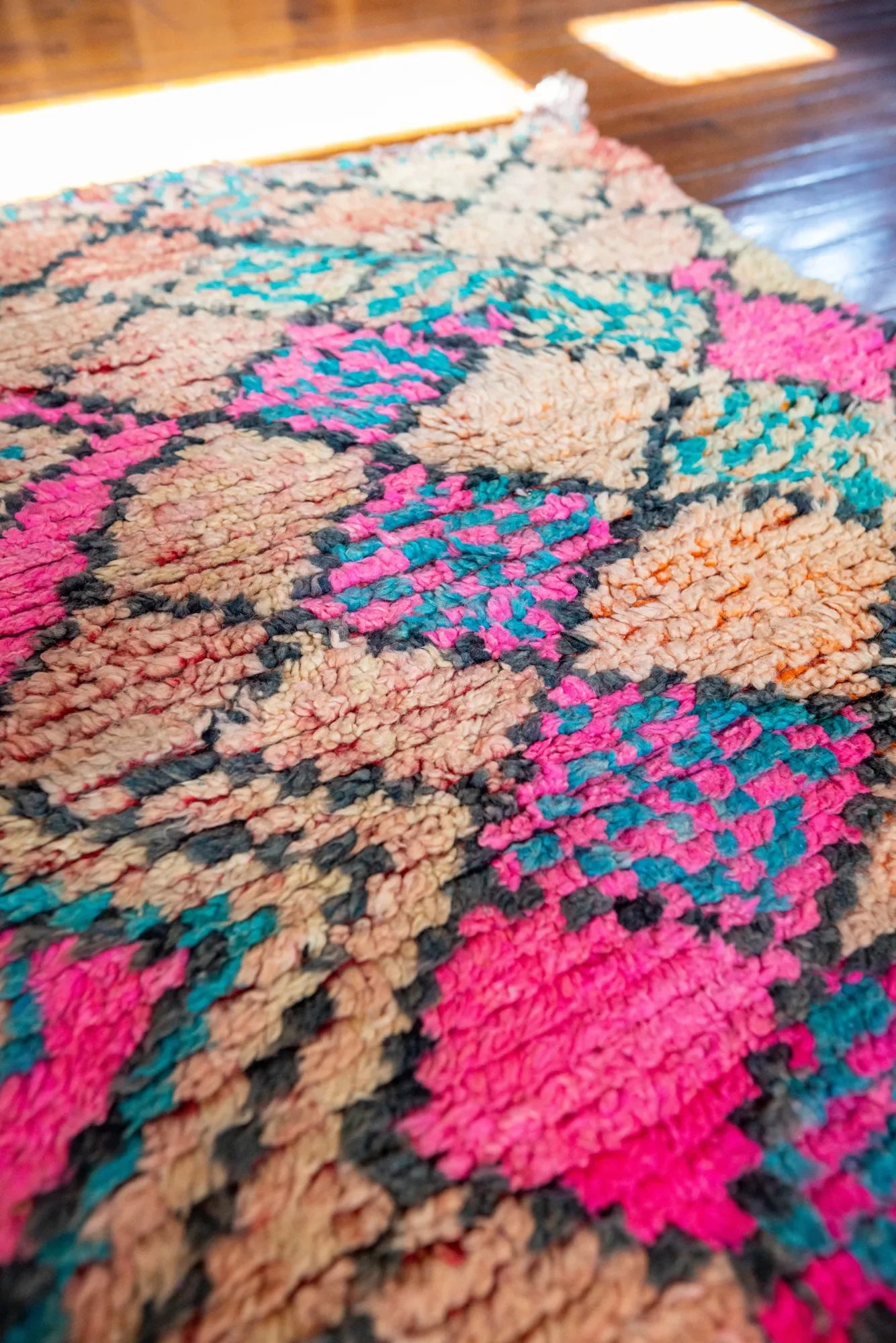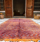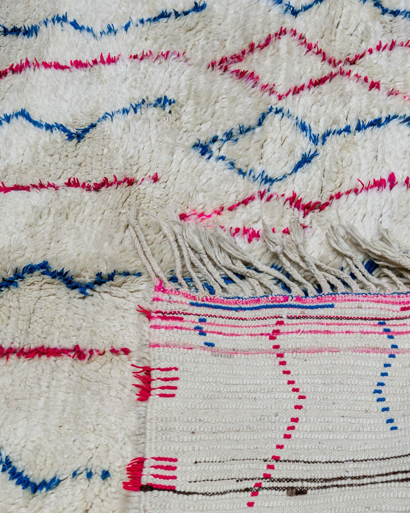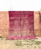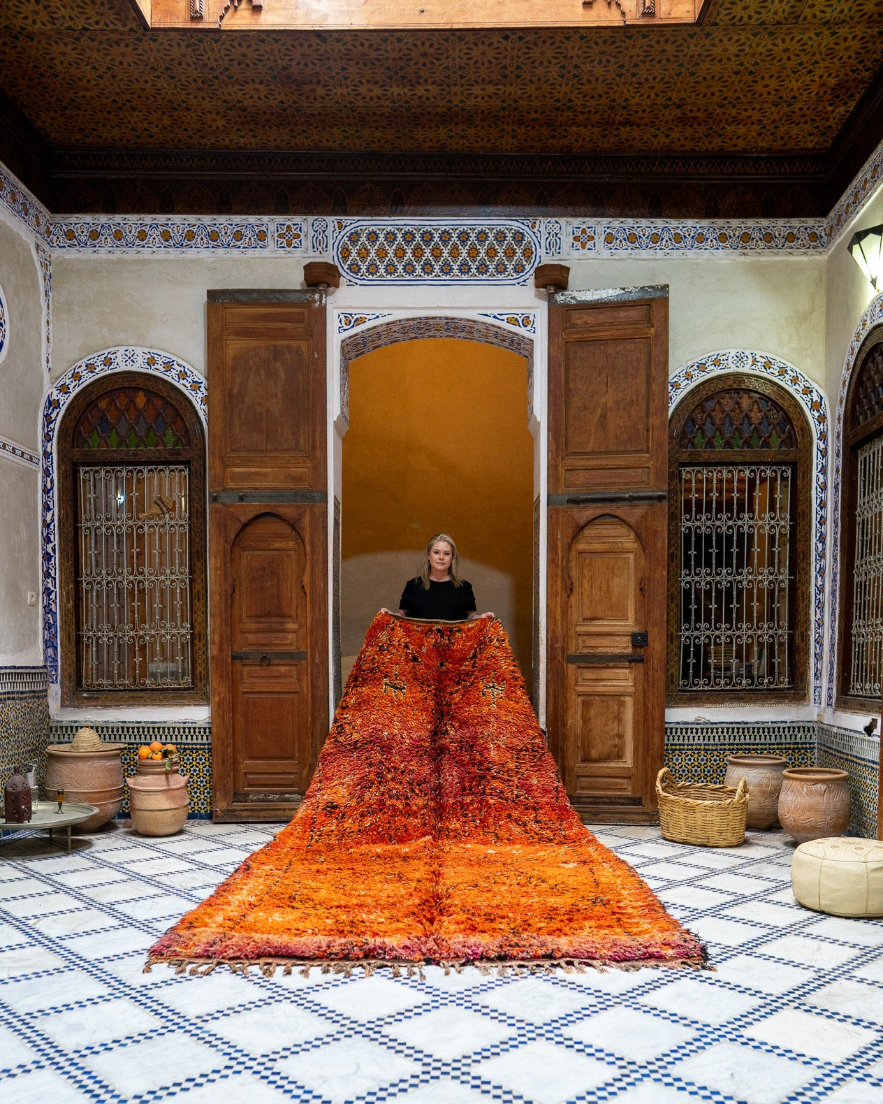 Keski-Atlaksen alueella valmistetut Beni M’Guild -heimon matot ovat tunnettuja korkeasta laadusta sekä intensiivisestä värityksestään. Tämäkin paksu ja jämäkkä yksilö hurmaa pinkin, oranssin ja beigen sävyillä. Staycation-matto on kaksi metriä leveä ja kolme metriä pitkä, ja sen arvioitu ikä on yli 30 vuotta.