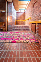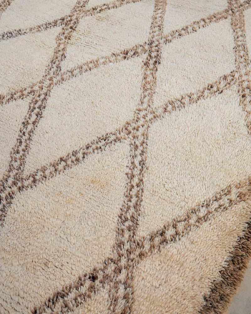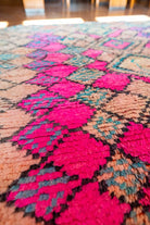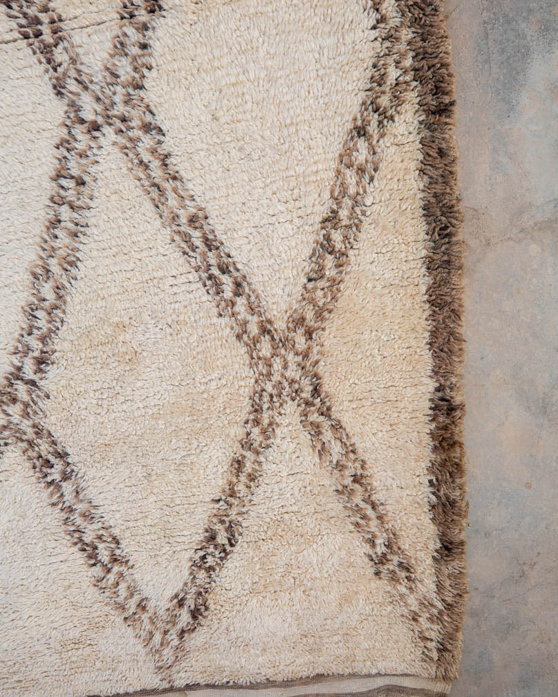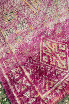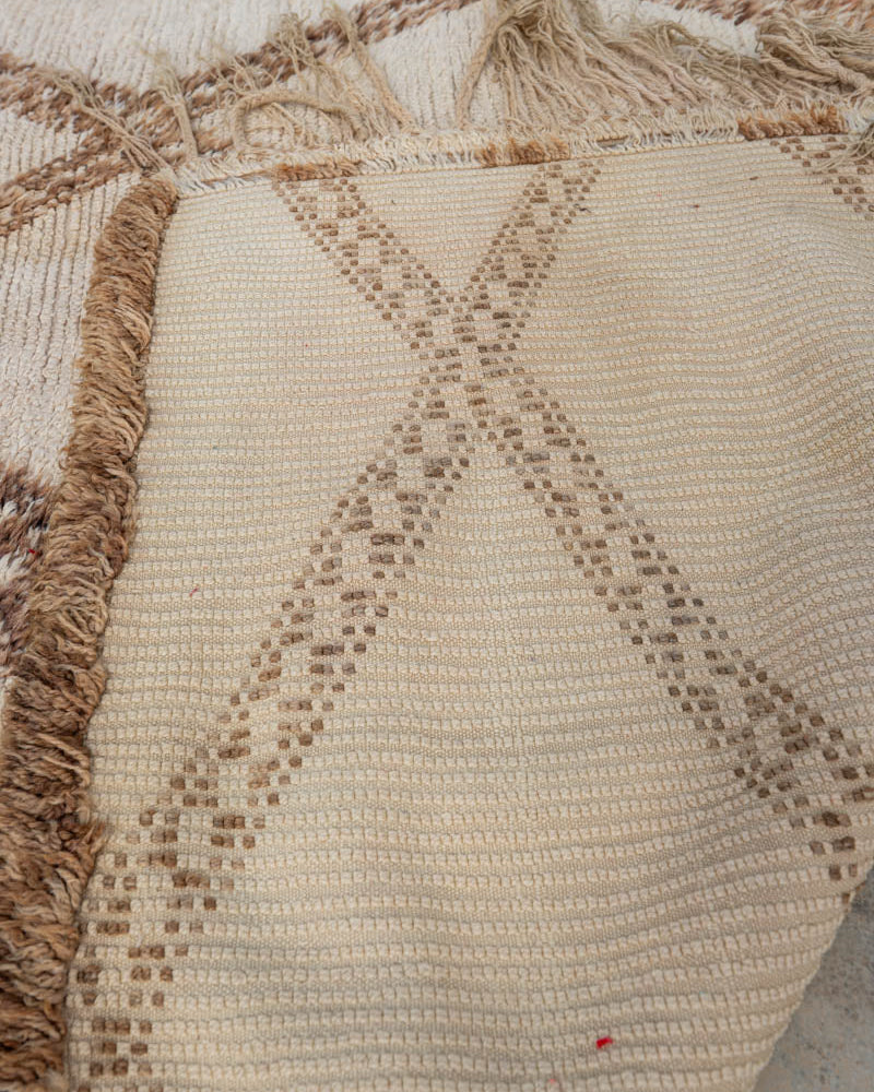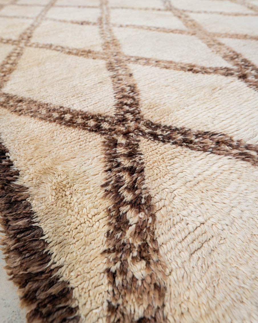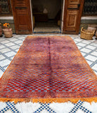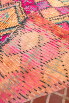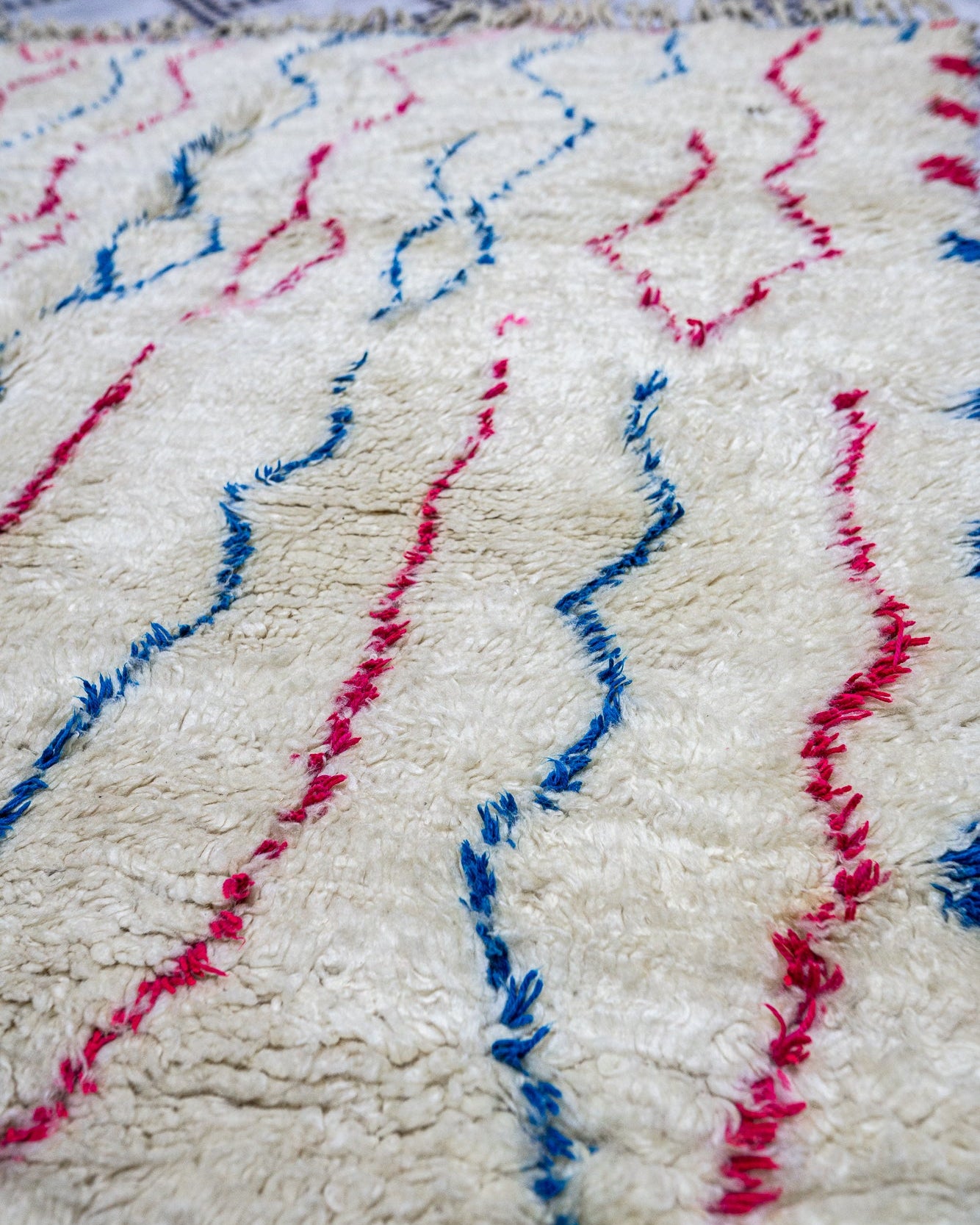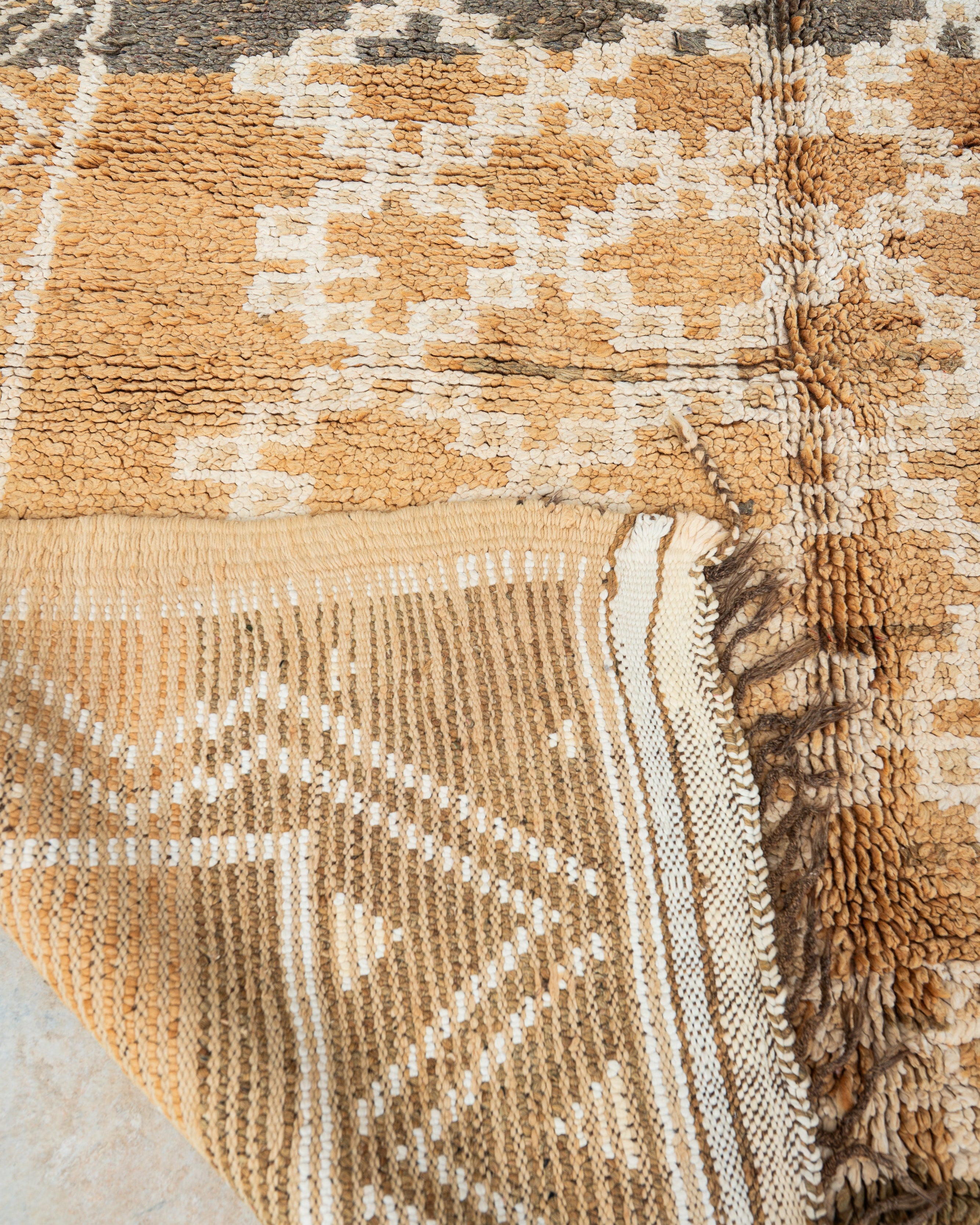 Keski-Atlaksen alueella valmistetut Beni M’Guild -heimon matot ovat tunnettuja korkeasta laadusta sekä intensiivisestä värityksestään. Tämäkin paksu ja jämäkkä yksilö hurmaa pinkin, oranssin ja beigen sävyillä. Staycation-matto on kaksi metriä leveä ja kolme metriä pitkä, ja sen arvioitu ikä on yli 30 vuotta.