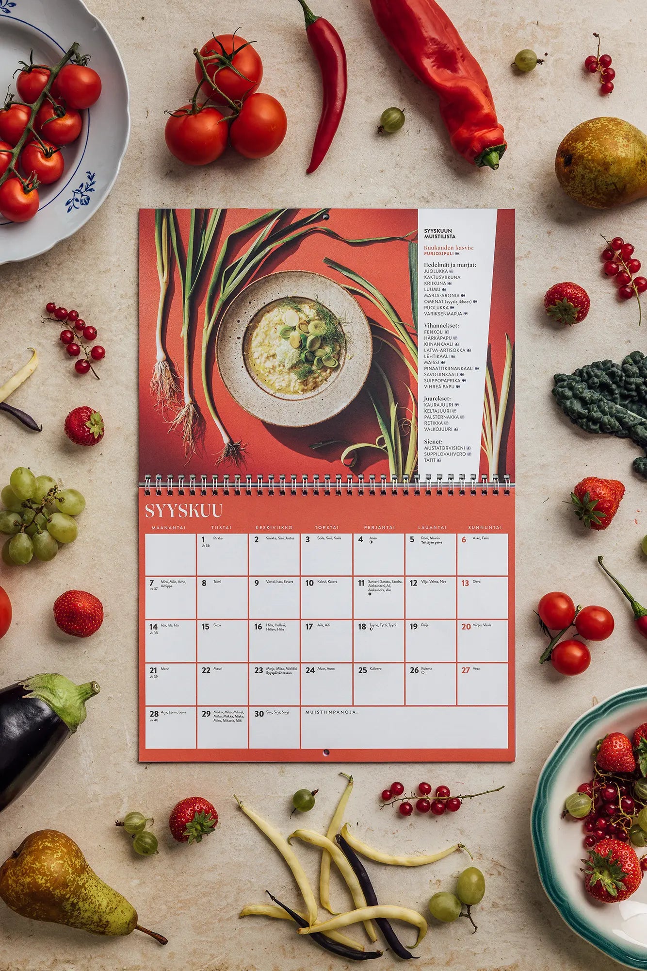 Satokausikalenteri 2026 on rakennettu tukevasti kuukauden kasvisten ympärille. Pääset joka kuukausi tutustumaan syvemmin yhteen sesongin kiinnostavimmista kasviksista ja opit käyttämään sitä keittiössäsi. Vuoden kiertoa seuraavasta, alan ammattilaisten laatimasta tieto-osiosta löydät ohjeita ja vinkkejä muun muassa kasvisten paahtamiseen, smoothie-resepteihin, salaatinkastikkeisiin ja kotimaisiin ruokakaloihin.