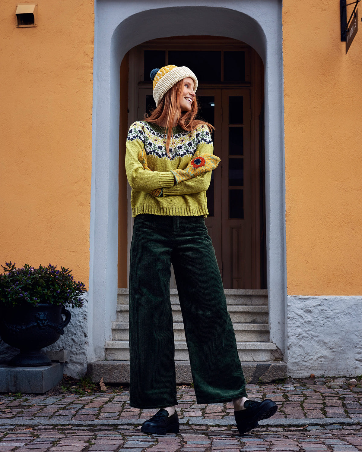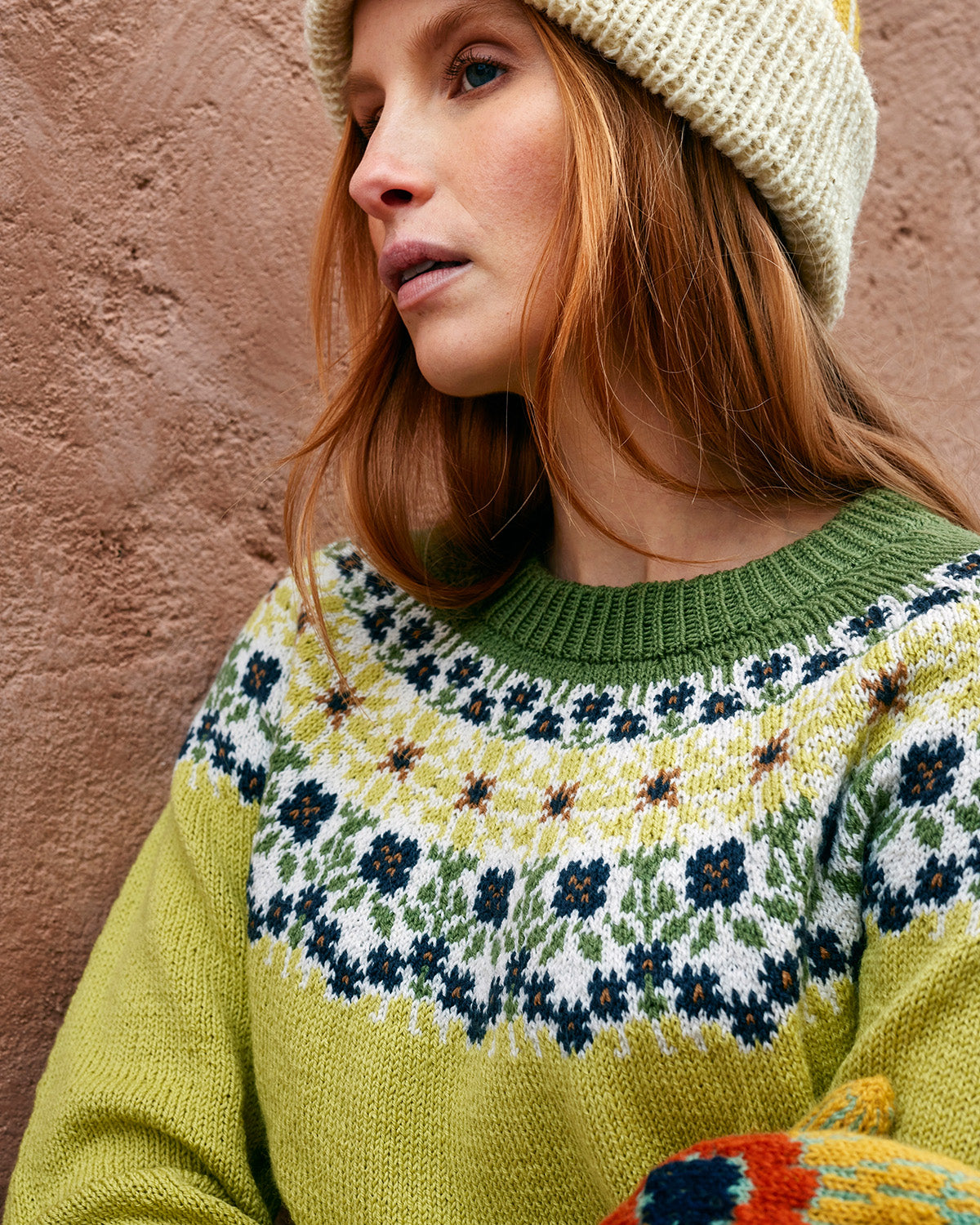 Vaikeustasoltaan haastava ohje sisältää kattavan kokohaarukan XXS:stä 5XL:ään. Ympärivuotiseen käyttöön sopiva villapaita näyttää erityisen hyvältä murrettujen sävyjen ja pehmeiden materiaalien kanssa – esimerkiksi kaupunkikäytössä sammalenvihreät vakosamettihousut toistavat kauniisti kukkakuvion tummimpia sävyjä.