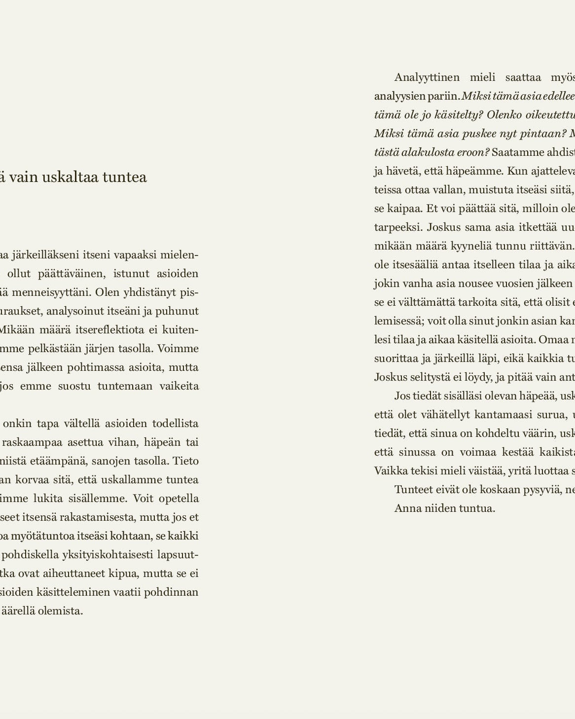 Kirjan valikoimissa on laadukasta kotimaista ja parasta käännettyä kaunokirjallisuutta maailmalta sekä houkuttelevimpia uutuuskirjoja ja aikaa kestäviä klassikkoteoksia. Löydät myös laajan valikoiman tietokirjallisuutta sekä lasten- ja nuortenkirjallisuutta.