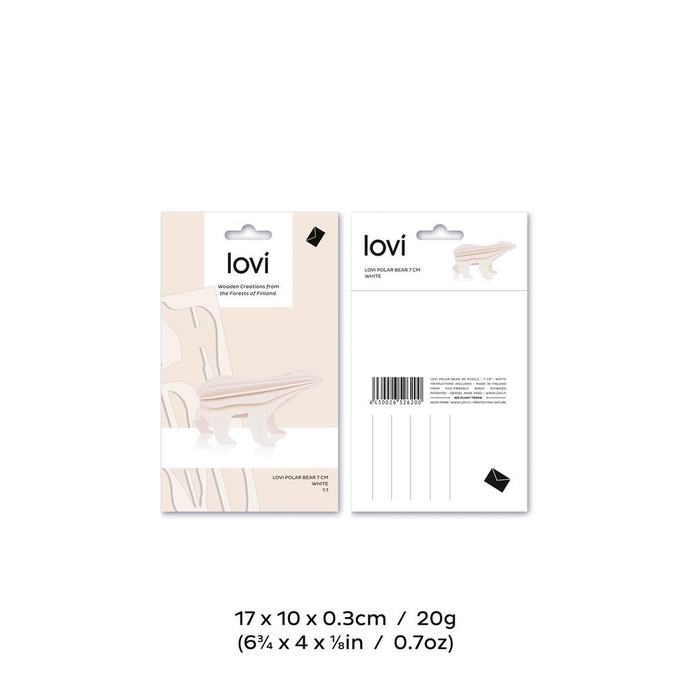 Lumen ja jään peittämillä asuinseuduilla sulaudutaan ympäröiviin väreihin. Lovi-jääkarhu on valinnut sävyikseen valkoisen ja vaaleansinisen. Valikoimasta löytyy sekä täysikasvuinen jääkarhu, että pienempi jääkarhun pentu.