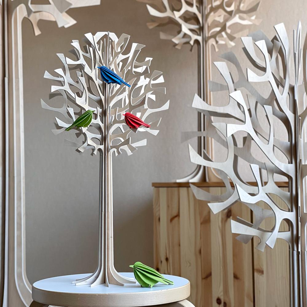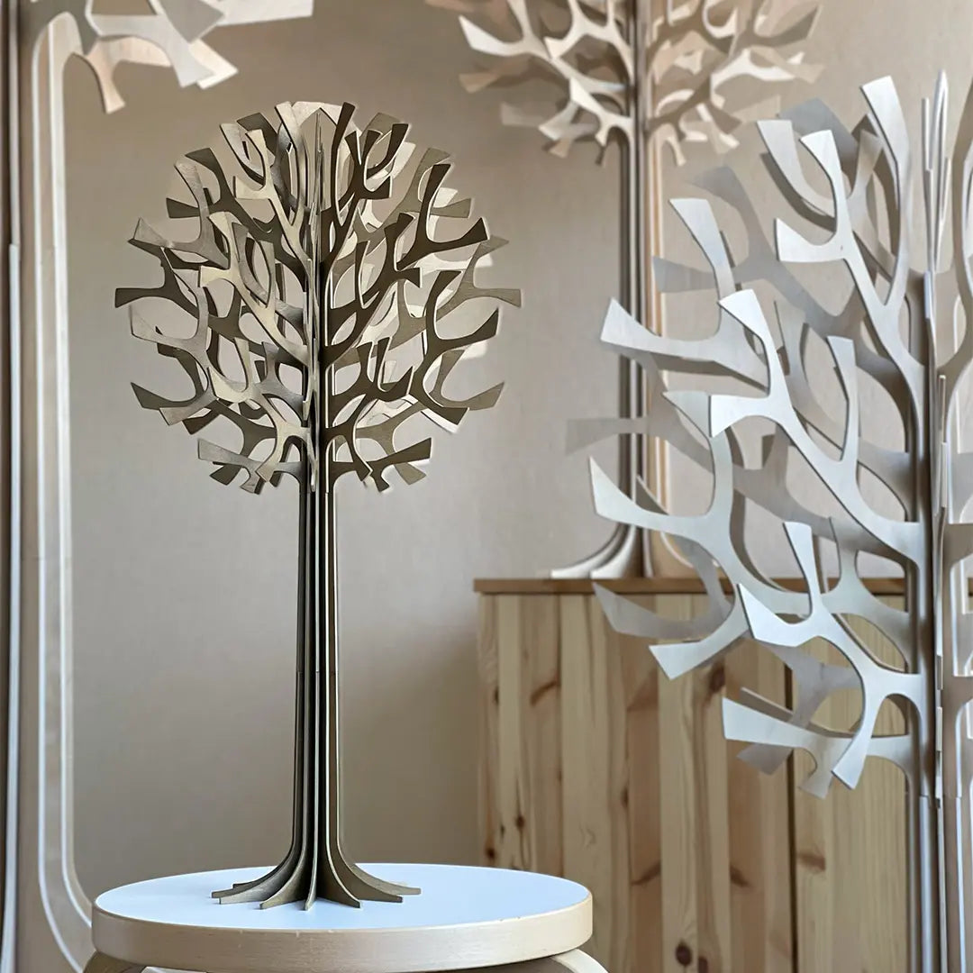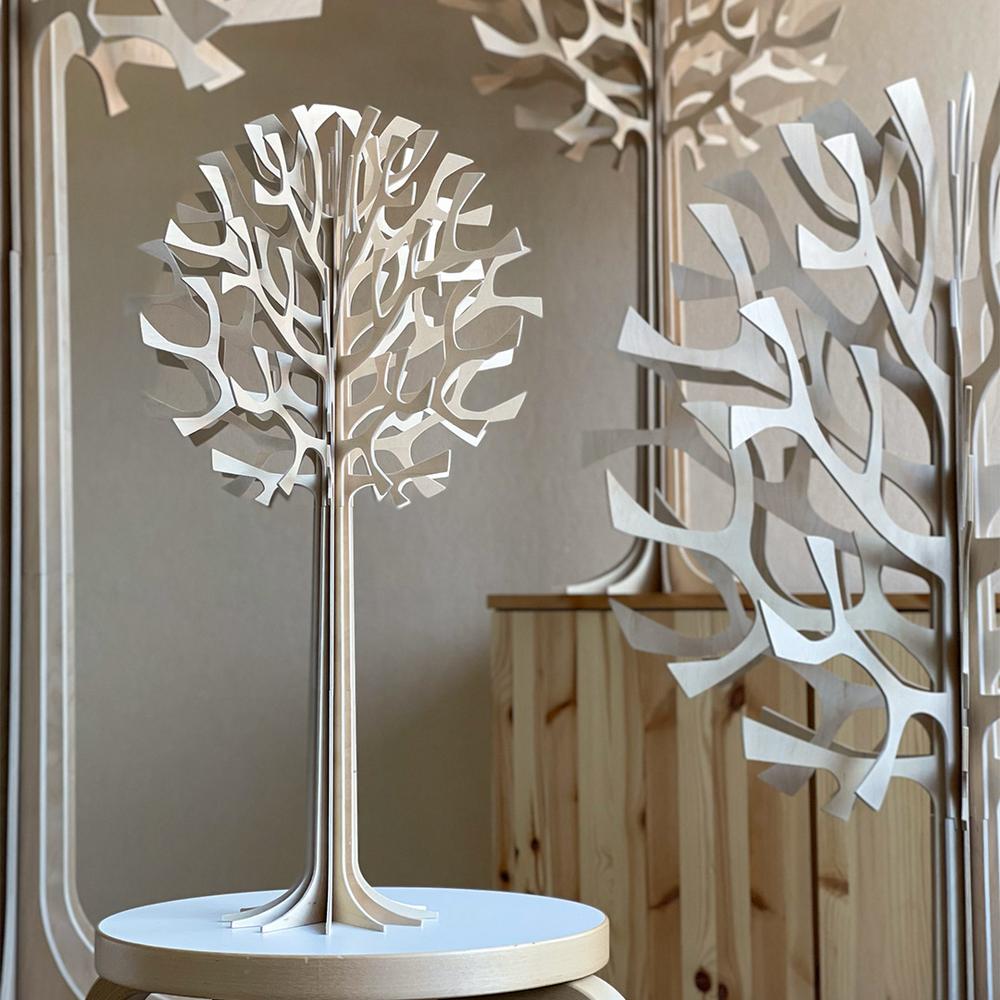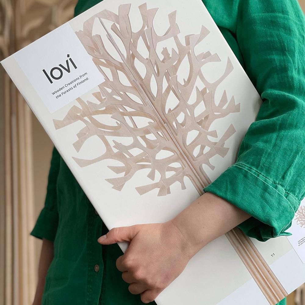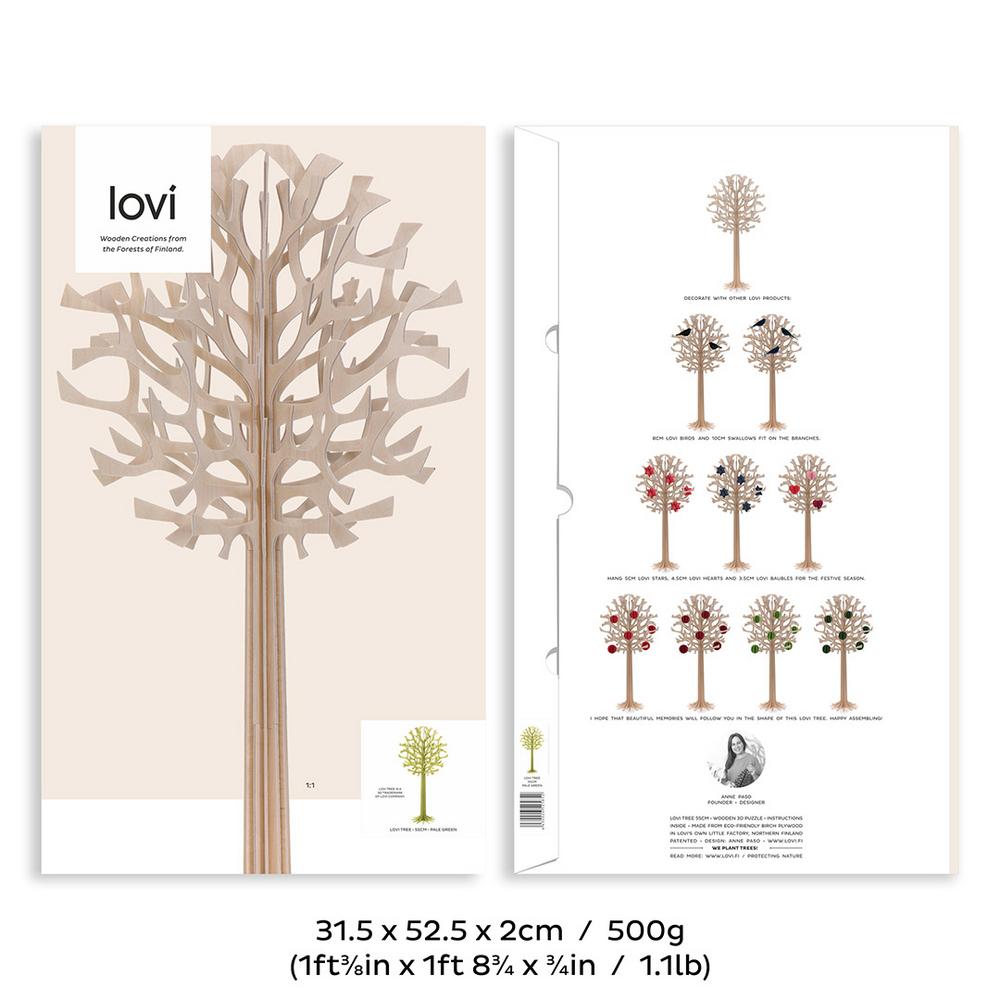 Lovi-puu 55cm on kotimaisesta koivuvanerista valmistettu, koottava sisustuselementti. Puussa on 15 osaa, jotka asetetaan paikalleen pakkauksessa mukana olevan kuvallisen ohjeen osoittamalla tavalla. Latvan rauhallinen pyöreys, oksankärkien kaaret ja liitosten pienimmätkin yksityiskohdat on tarkasti mietitty ja käytössä toimiviksi todettu.