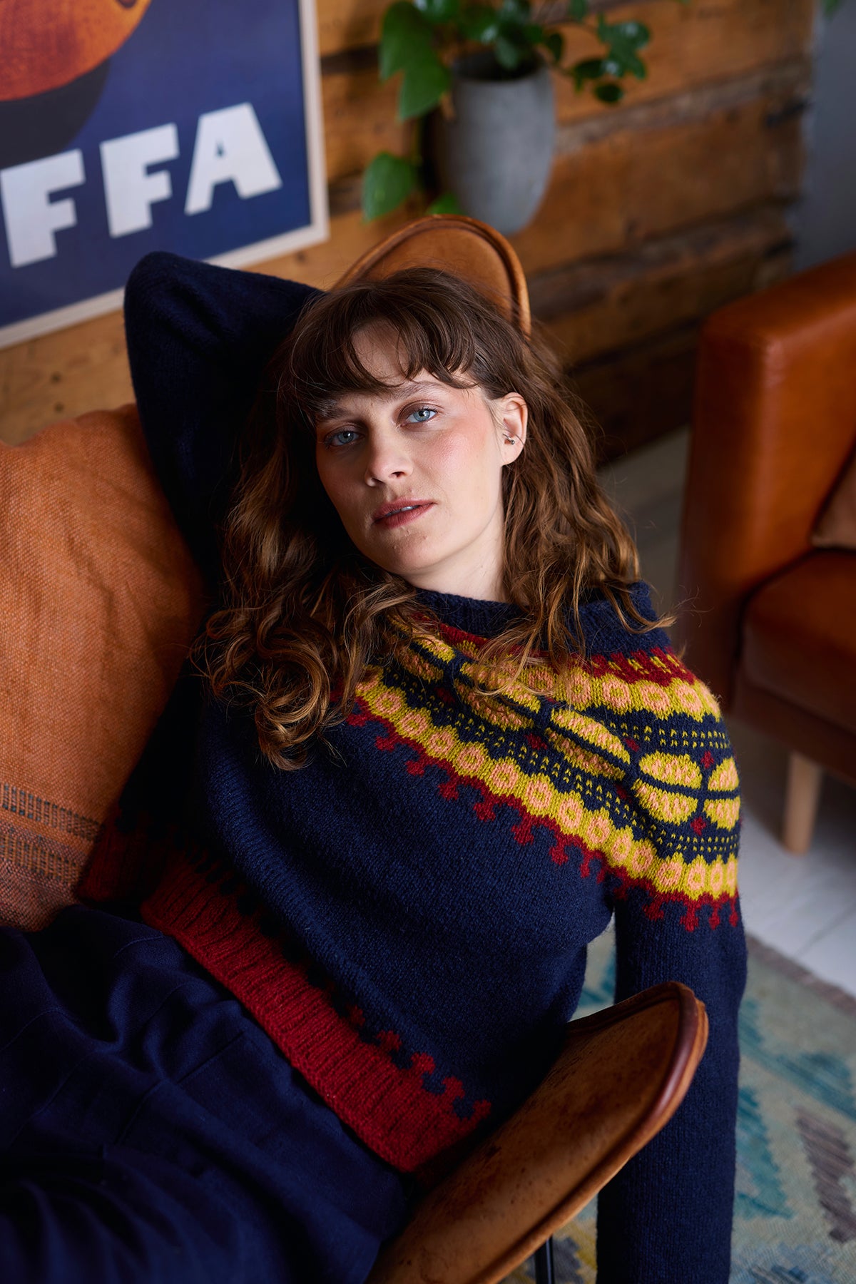 Ylhäältä alas neulottavan puseron kaarroketta koristavat herkulliset appelsiinit.
