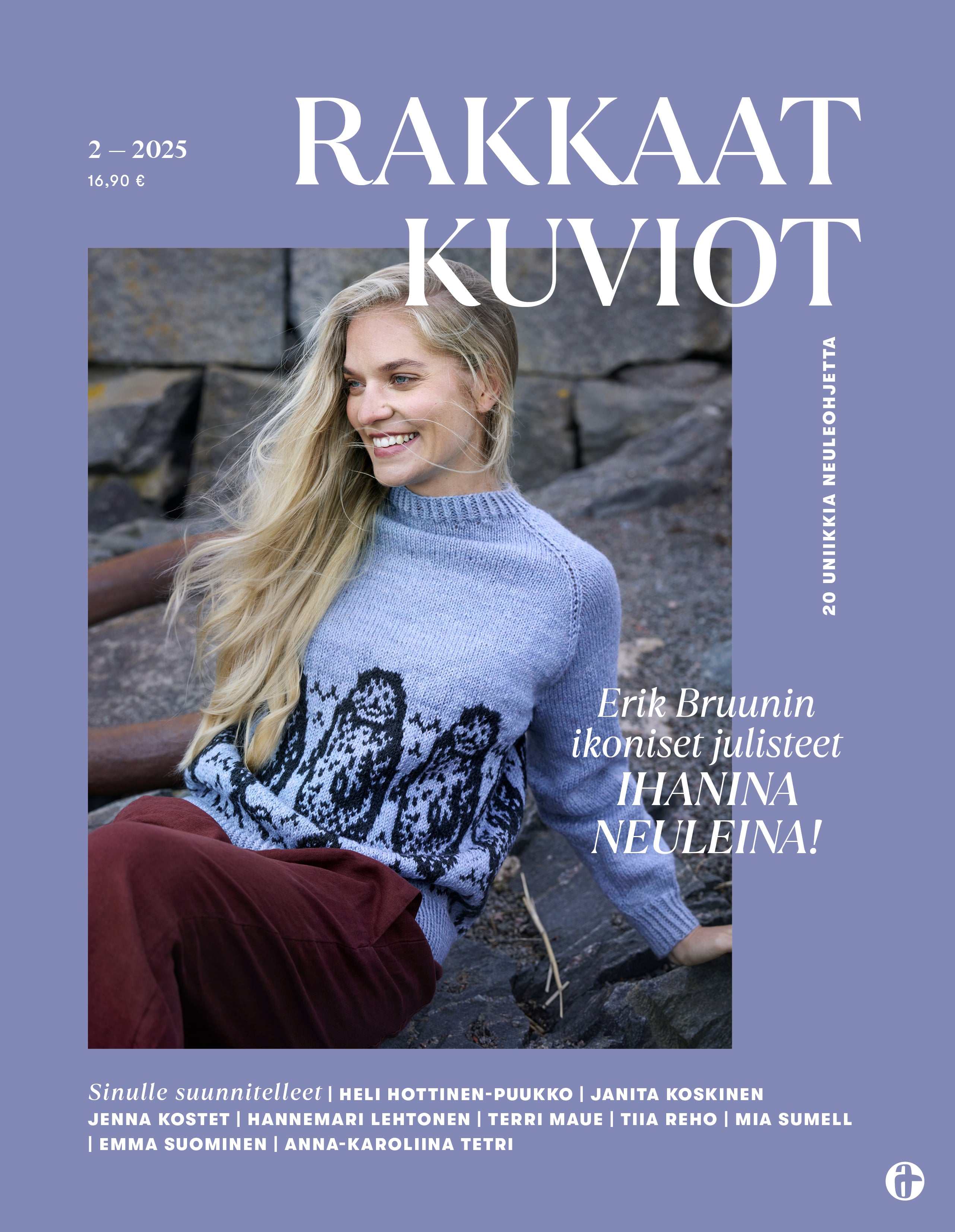 Rakkaat kuviot & Erik Bruun on Kotivinkin upea neulelehti, jonka inspiraationa on Erik Bruunin ikoniset julisteet. 124-sivuinen lehti sisältää 20 uniikkia ja ennen julkaisematonta neulemallia. Lisäksi voit lukea sivuilta artikkelin Erik Bruunista.