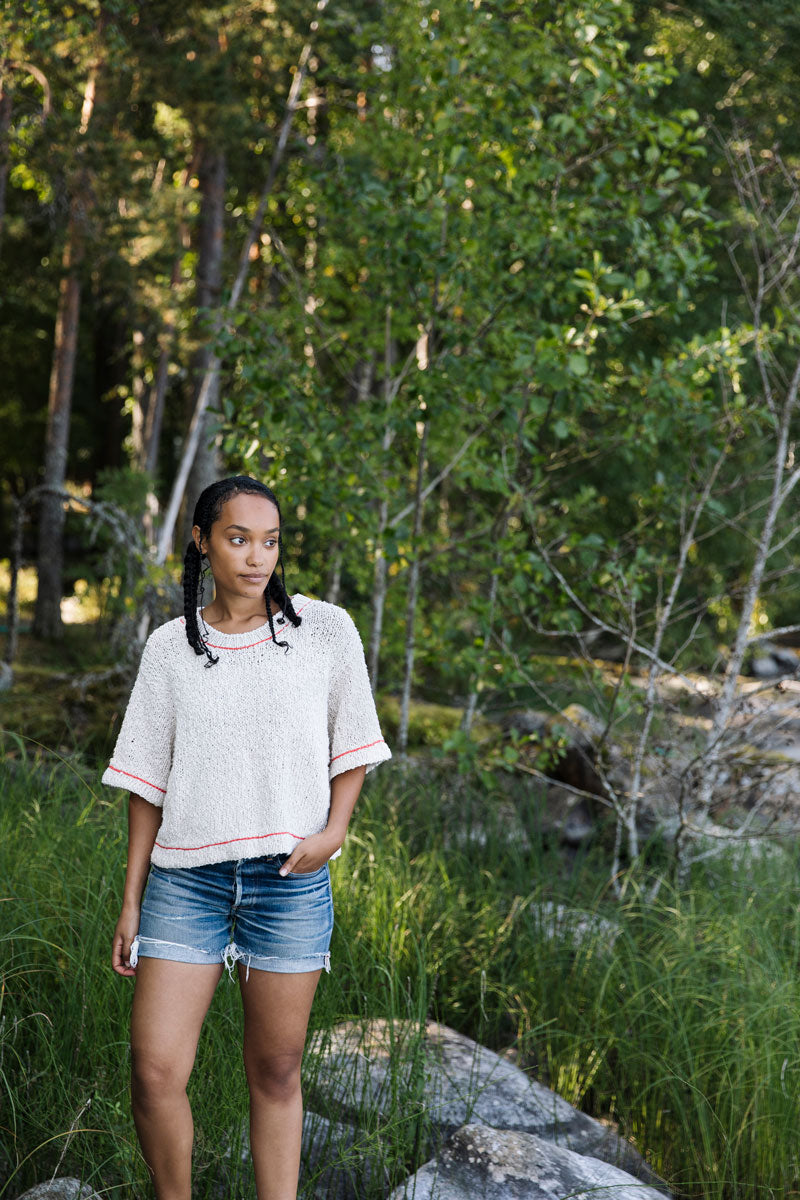 Täällä neulon -juttusarjan, jossa kuvataan neulojia suosikkipaikoissaan. Tässä numerossa tapaamme tamperelaisen Tiina Lehtosen, jonka rakkain neulomispaikka on oma siirtolapuutarhamökki.