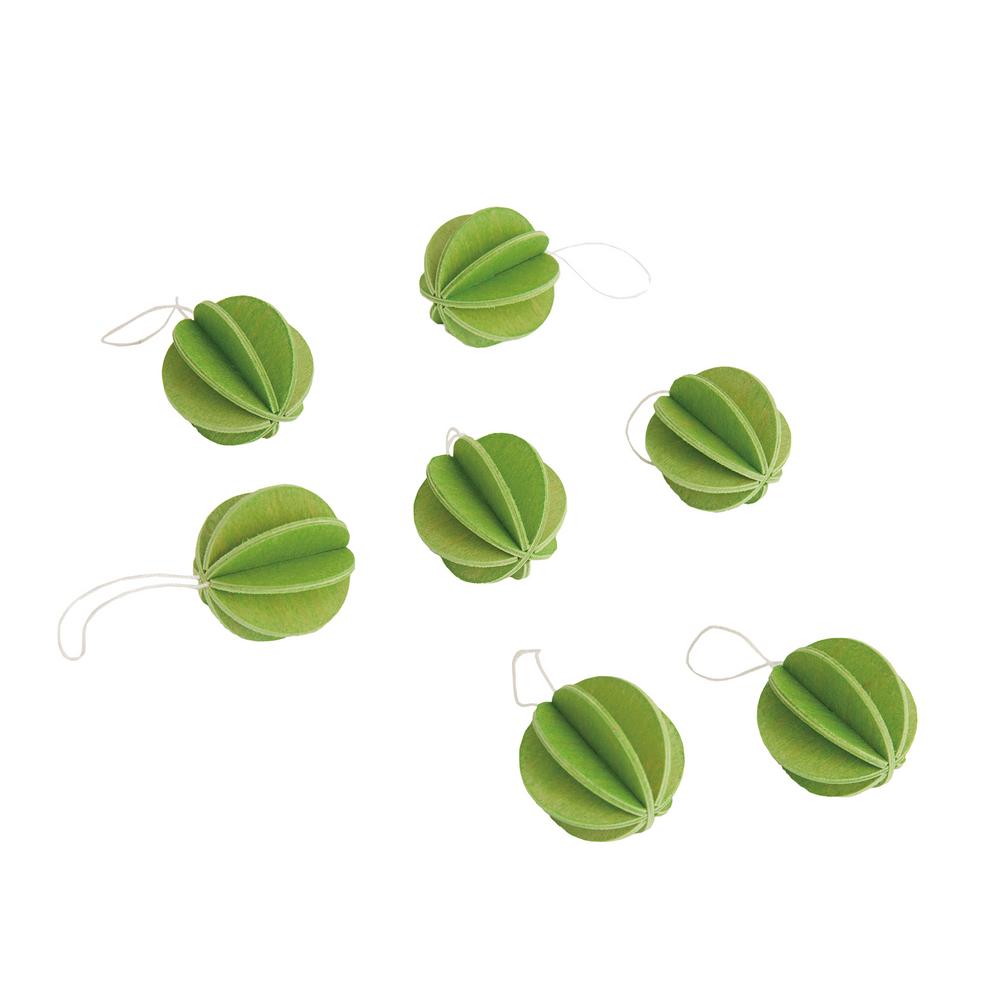 Jokainen pakkaus sisältää 7 palloa, jotka voit koota helposti näppärillä sormilla. Pakkaus sisältää ohuet langat, jotka on leikattu sopivan pituisiksi ripustamista varten, sekä kuvalliset ohjeet kokoamisen helpottamiseksi.