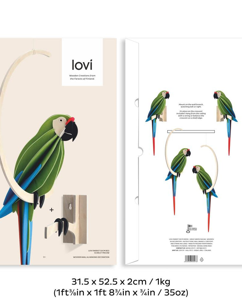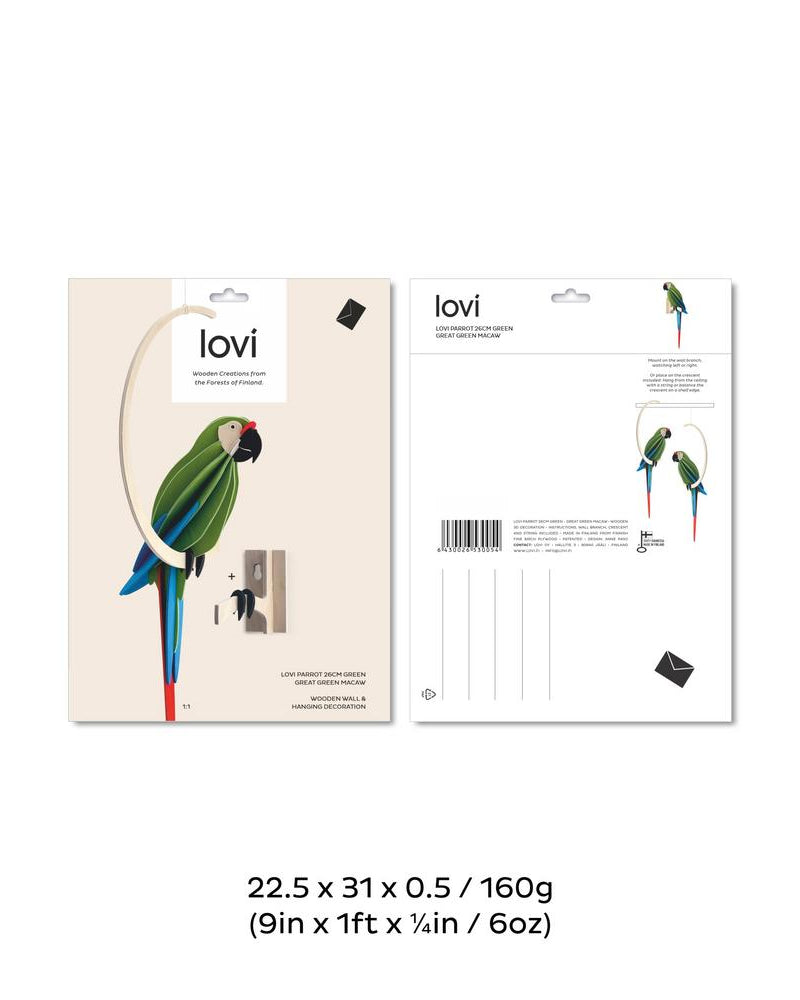Kaikki Lovi-tuotteet valmistetaan yrityksen omassa tehtaassa Pohjois-Suomen Jäälissä. Koristeet valmistetaan FSC-sertifioidusta koivuvanerista ja esineissä käytetään patentoitua Lovi-liitosta, mikä mahdollistaa koristeiden purkamisen, litteänä säilyttämisen sekä kätevän kuljettamisen. Vastuullisen tuotannon lisäksi Lovi tukee kotimaisten metsien suojelua Luonnonperintösäätiön kautta.