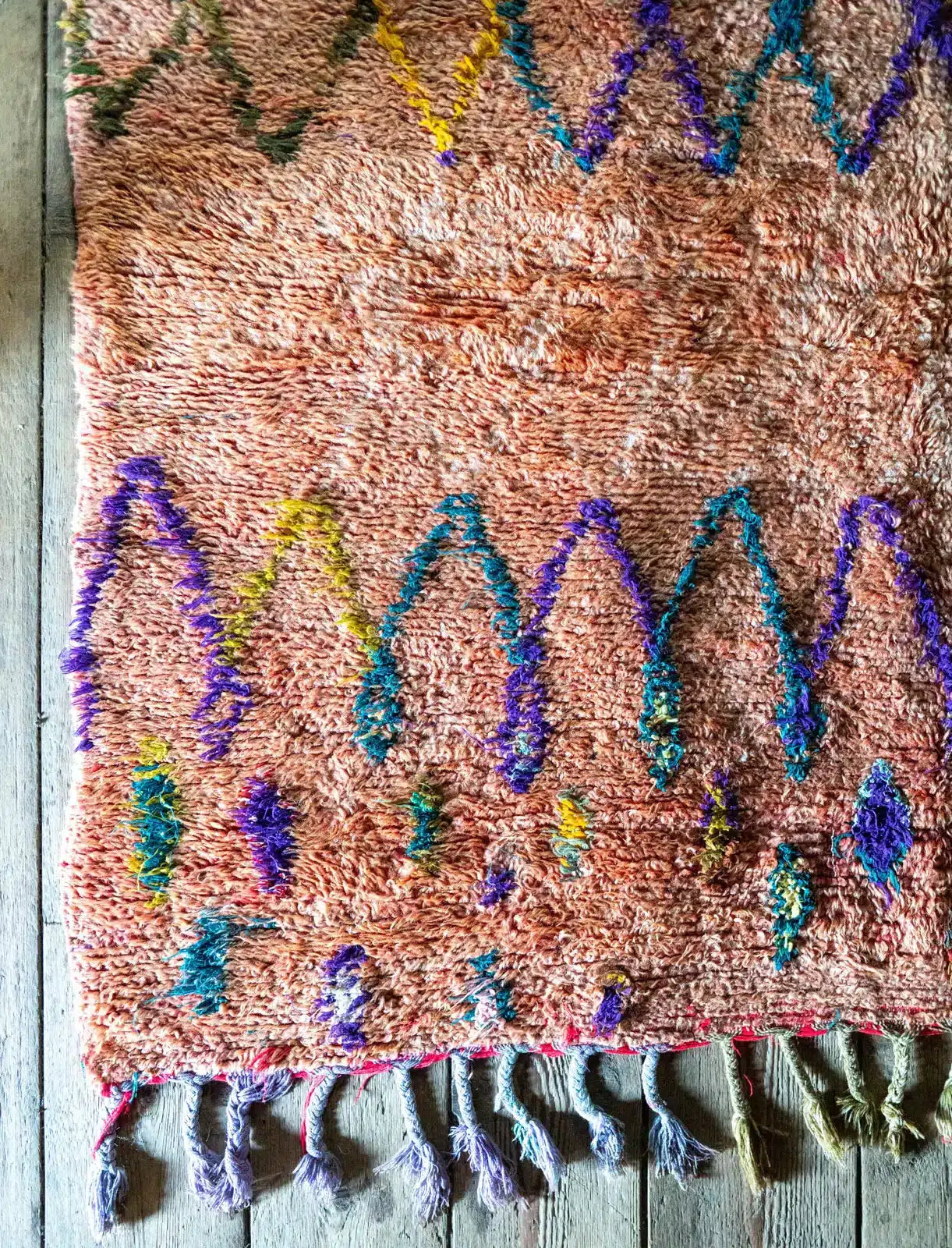 Mirage on hurmaava marokkolainen vintage-matto Azilal-heimolta, jossa puuterisen persikkainen pohjasävy saa rinnalleen eloisia ja värikkäitä yksityiskohtia. Sävymaailma on herkullinen ja ilme ihastuttavan karkkimainen – leikkisä mutta tyylikäs.
