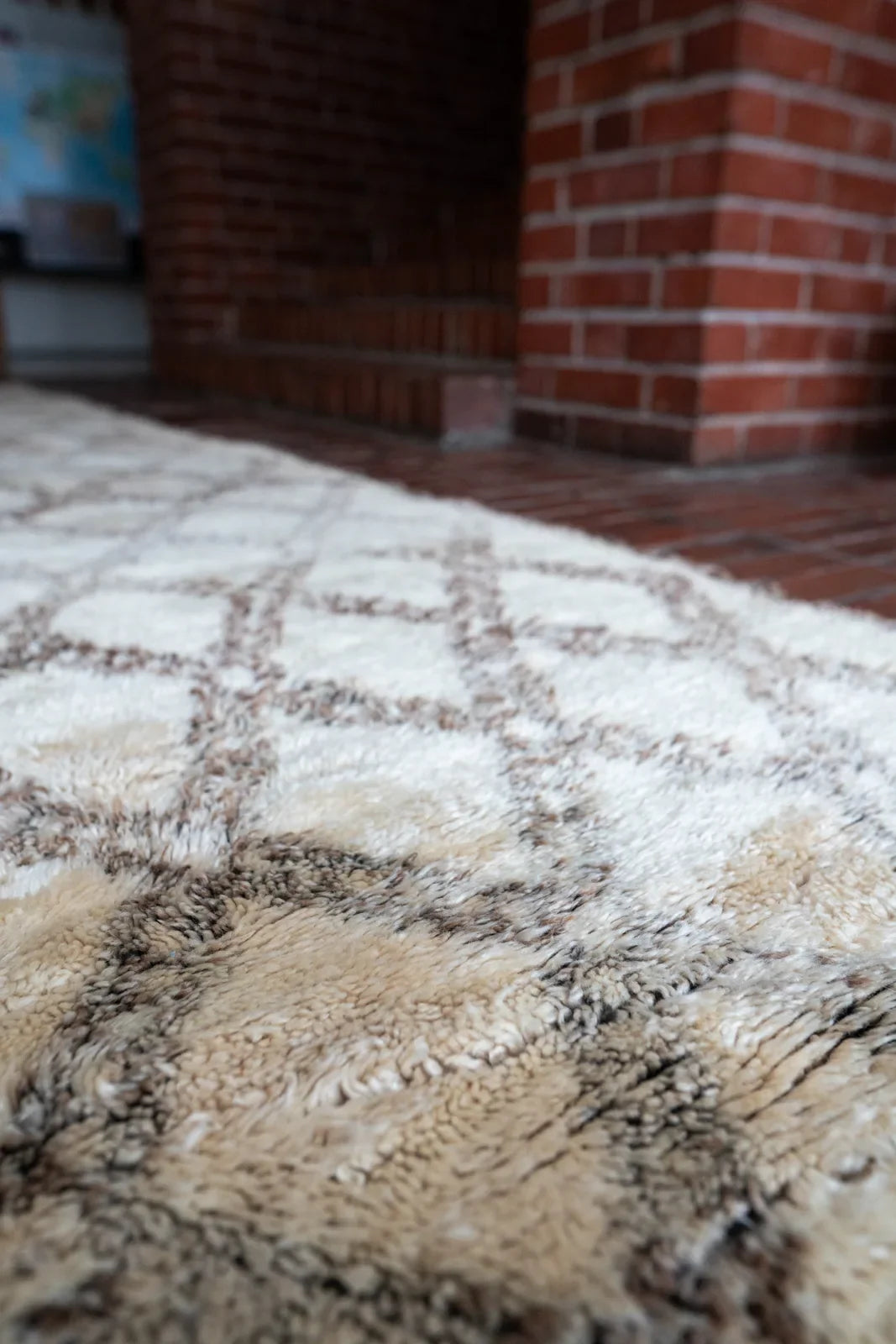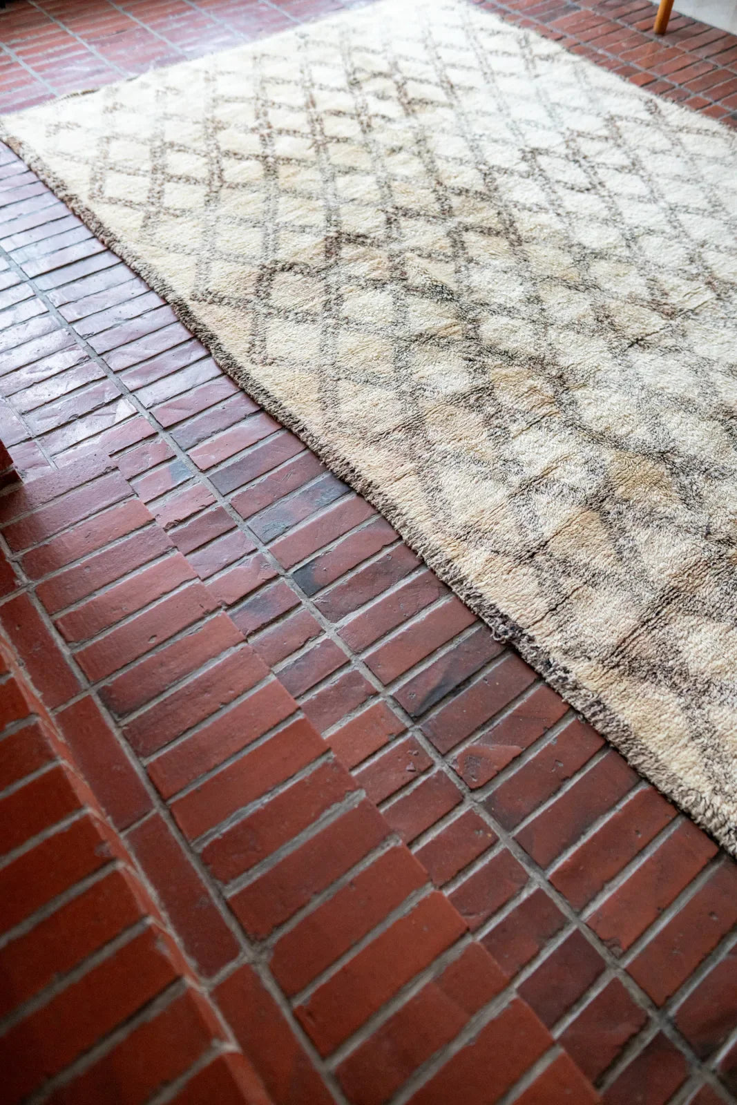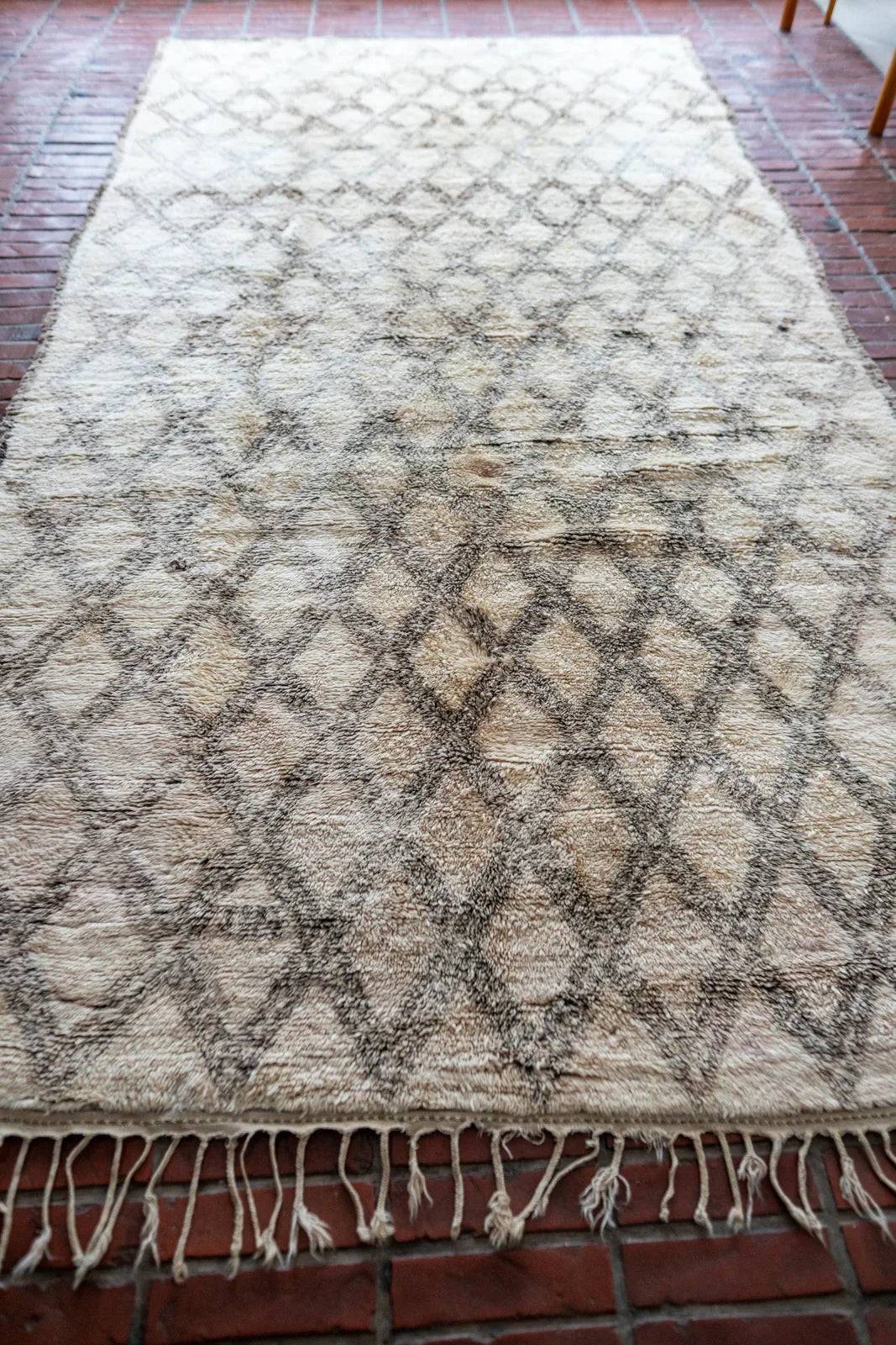 Aito, vanha marokkolainen Beni Ouarain -matto, joka edustaa heimon parhainta käsityöperinnettä. Matossa on luonnonvaalea pohja ja harmaalla toteutettu perinteinen timanttikuvio.
