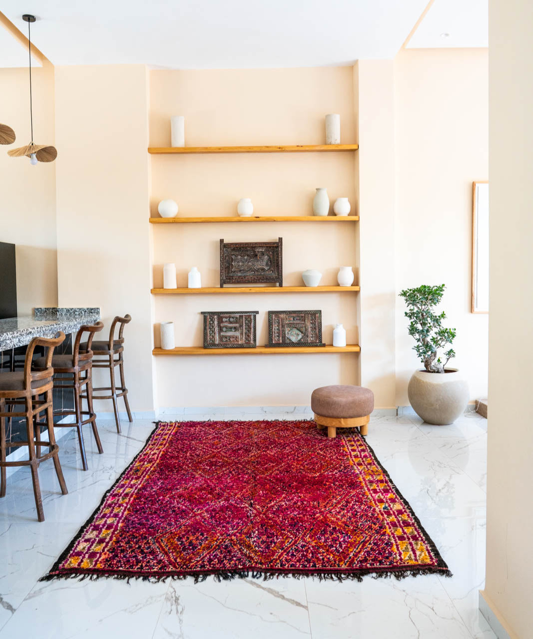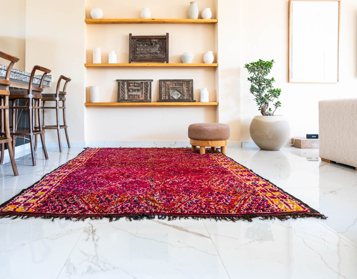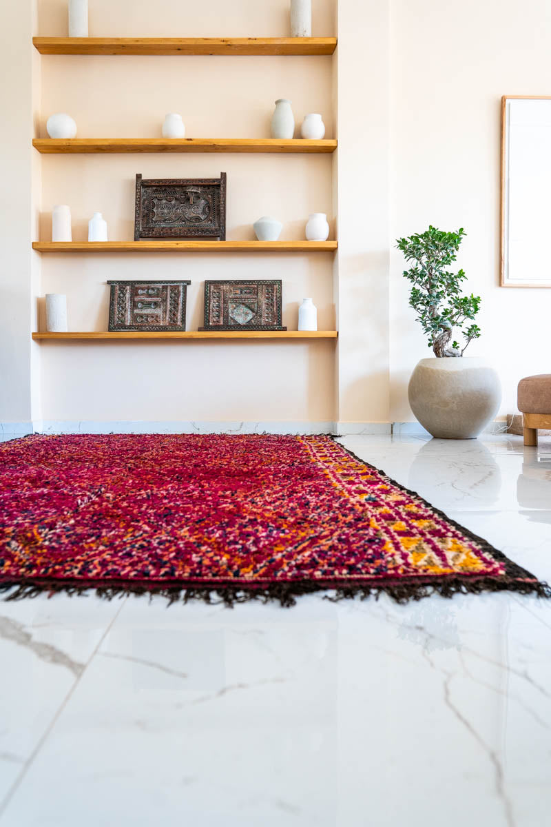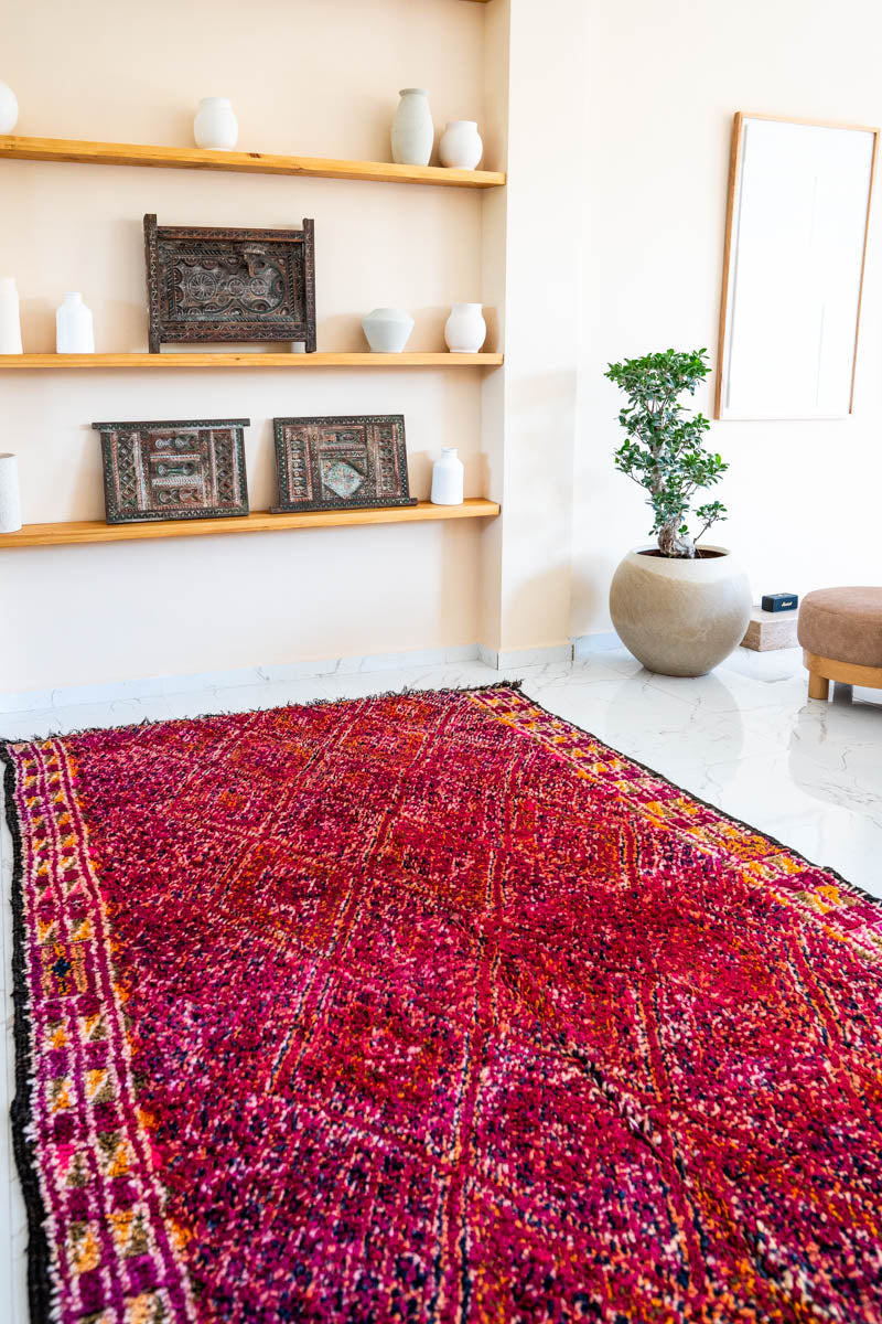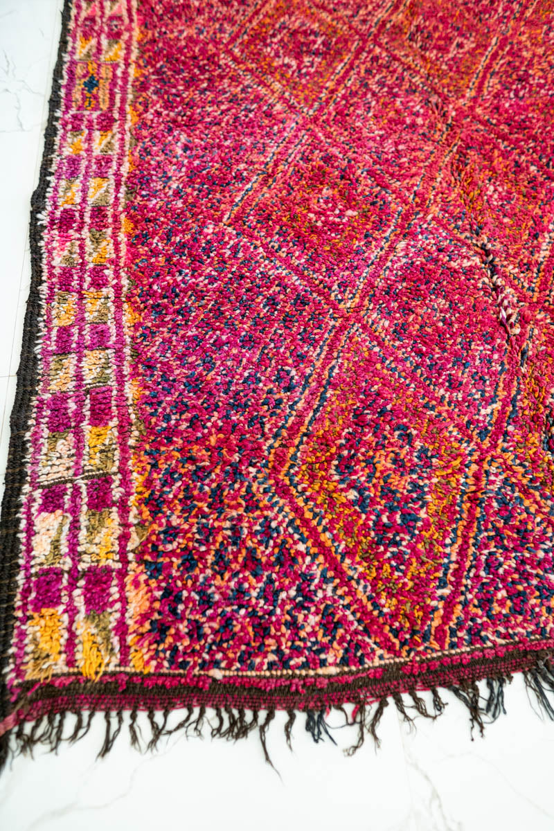 "Tarocco" on upea marokkolainen vintagematto Zayan-heimolta. Tässä uniikissa taideteoksessa intensiivinen värimaailma kohtaa perinteisen symmetrisen designin.