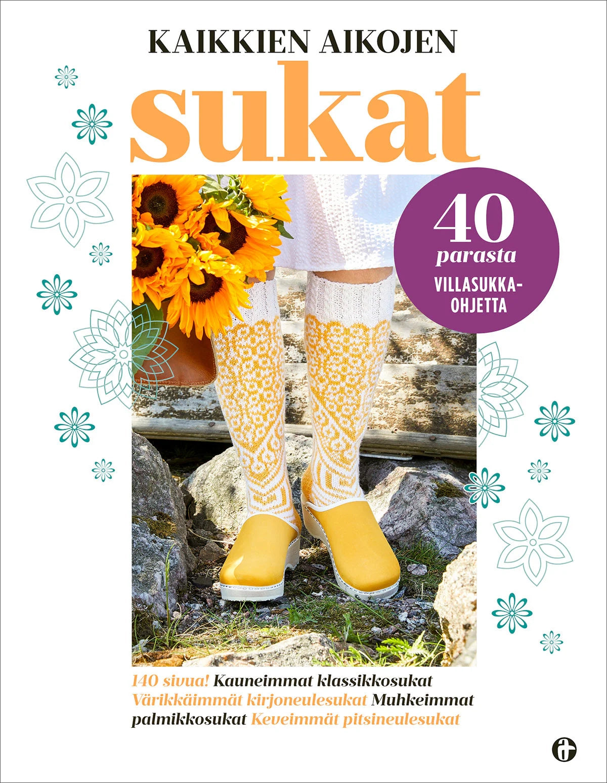 Kaikkien aikojen sukat -lehti sisältää 40 rakastetuinta sukkamallia vuodenajoittain tarjoiltuna. Syksyllä sukat sujahtavat kumisaappaisiin, talvella ne ovat aina jalassa. Keväällä ja kesällä sukat lämmittävät viileinä terassi-iltoina. Runsas valikoima kirjoneulesukkia antaa myös oivan mahdollisuuden käyttää ja yhdistellä jämälankoja.