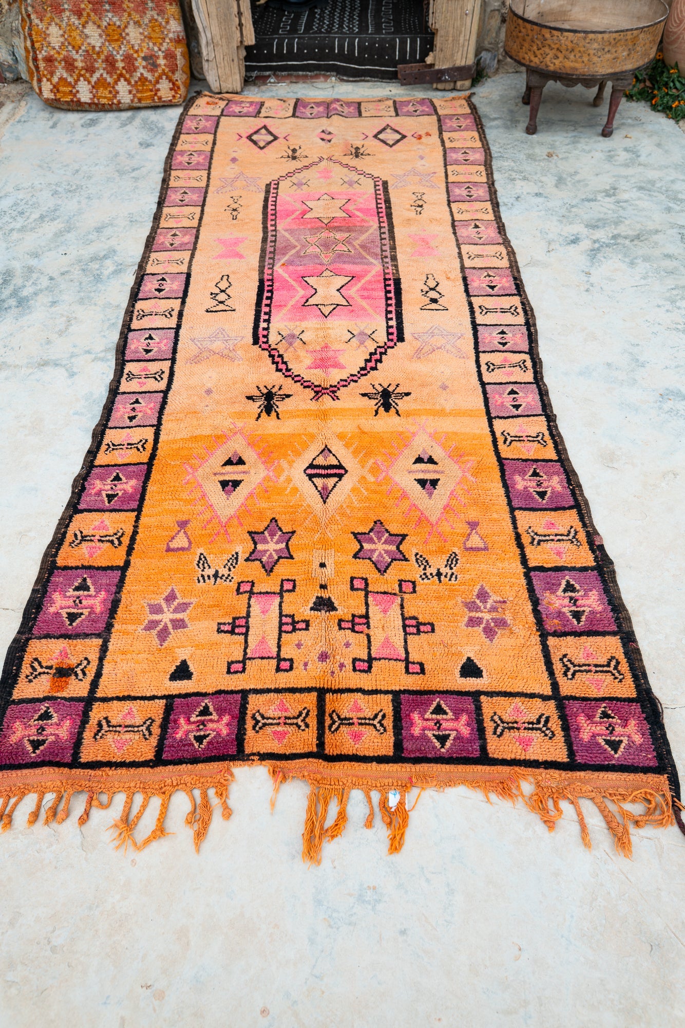 Tämä näyttävä käytävämatto tuo tilaan valoa ja lämpöä. Se toimii upeana katseenvangitsijana pitkissä tiloissa ja on täydellinen valinta, kun haluat sisustukseen lämmintä väriä, persoonallisuutta ja aitoa marokkolaista tunnelmaa.