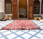 Huippulaadukas ja vaikuttava marokkolainen vintagematto Marmoucha-heimolta – todellinen käsintehty taideteos. Maton villa on untuvanpehmeää, mutta samalla jämäkkää ja painavaa, mikä kertoo sen korkeasta laadusta. Villalangassa on runsaasti kierrettä ja se on värjätty luonnonvärein, mikä antaa matolle tunnusomaisen intensiivisen ilmeen.