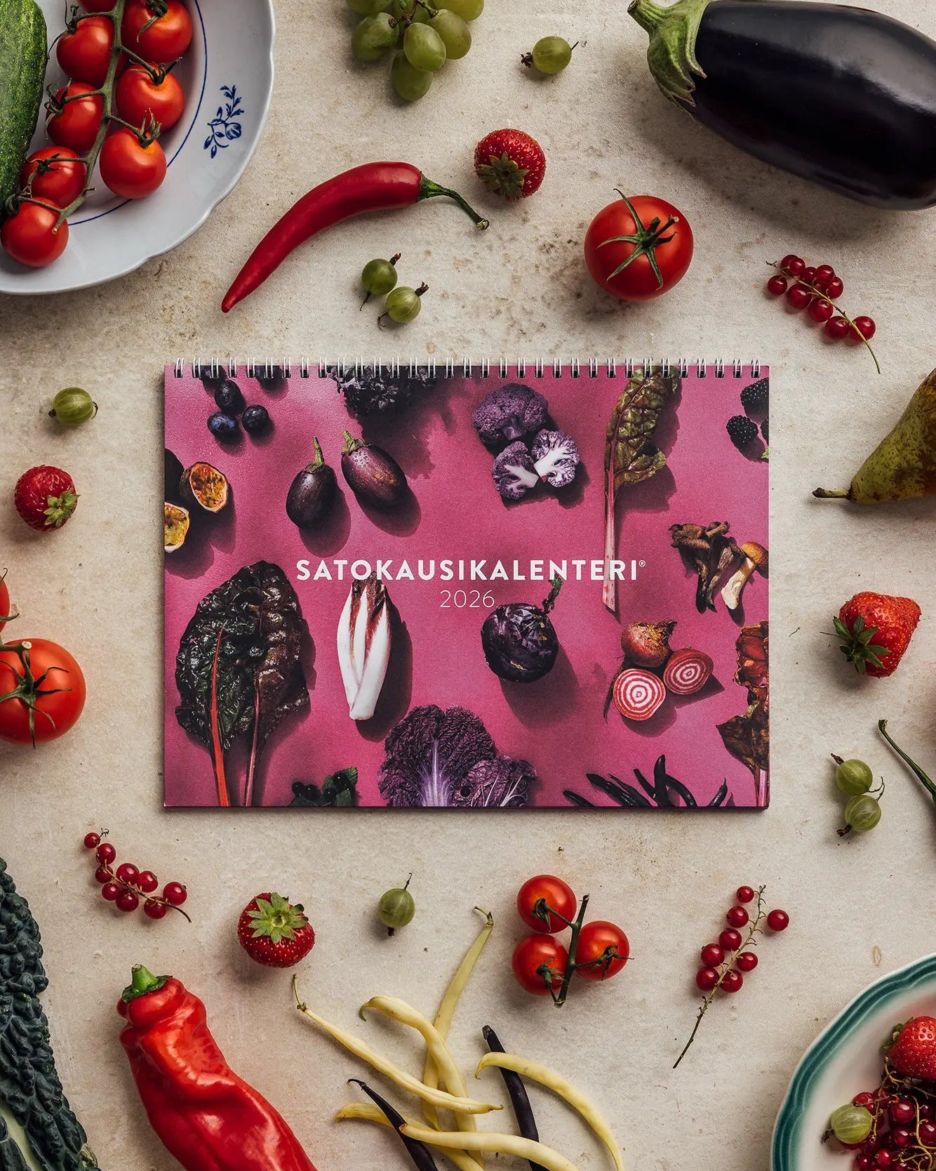 Satokausikalenteri 2026 on rakennettu tukevasti kuukauden kasvisten ympärille. Pääset joka kuukausi tutustumaan syvemmin yhteen sesongin kiinnostavimmista kasviksista ja opit käyttämään sitä keittiössäsi. Vuoden kiertoa seuraavasta, alan ammattilaisten laatimasta tieto-osiosta löydät ohjeita ja vinkkejä muun muassa kasvisten paahtamiseen, smoothie-resepteihin, salaatinkastikkeisiin ja kotimaisiin ruokakaloihin.