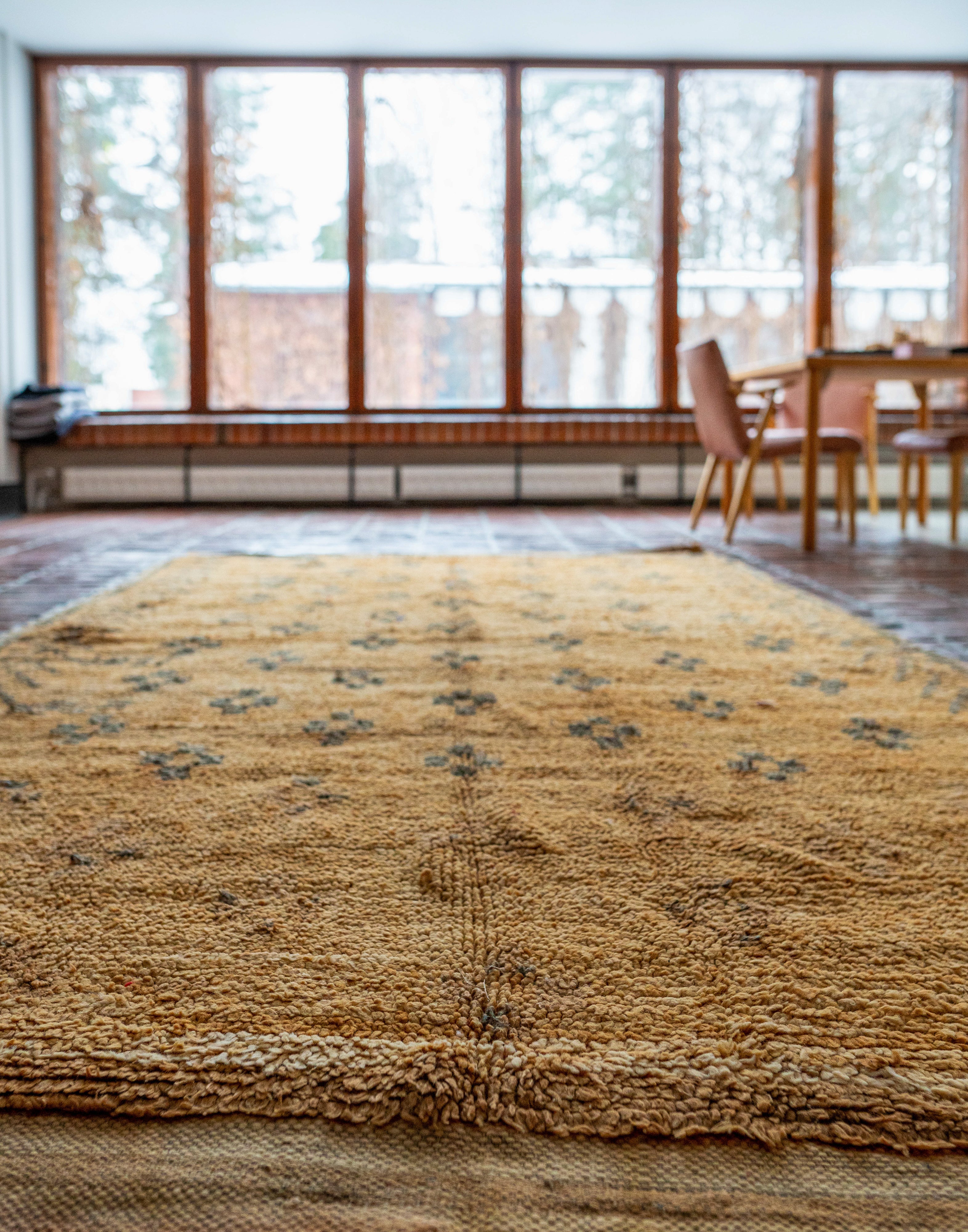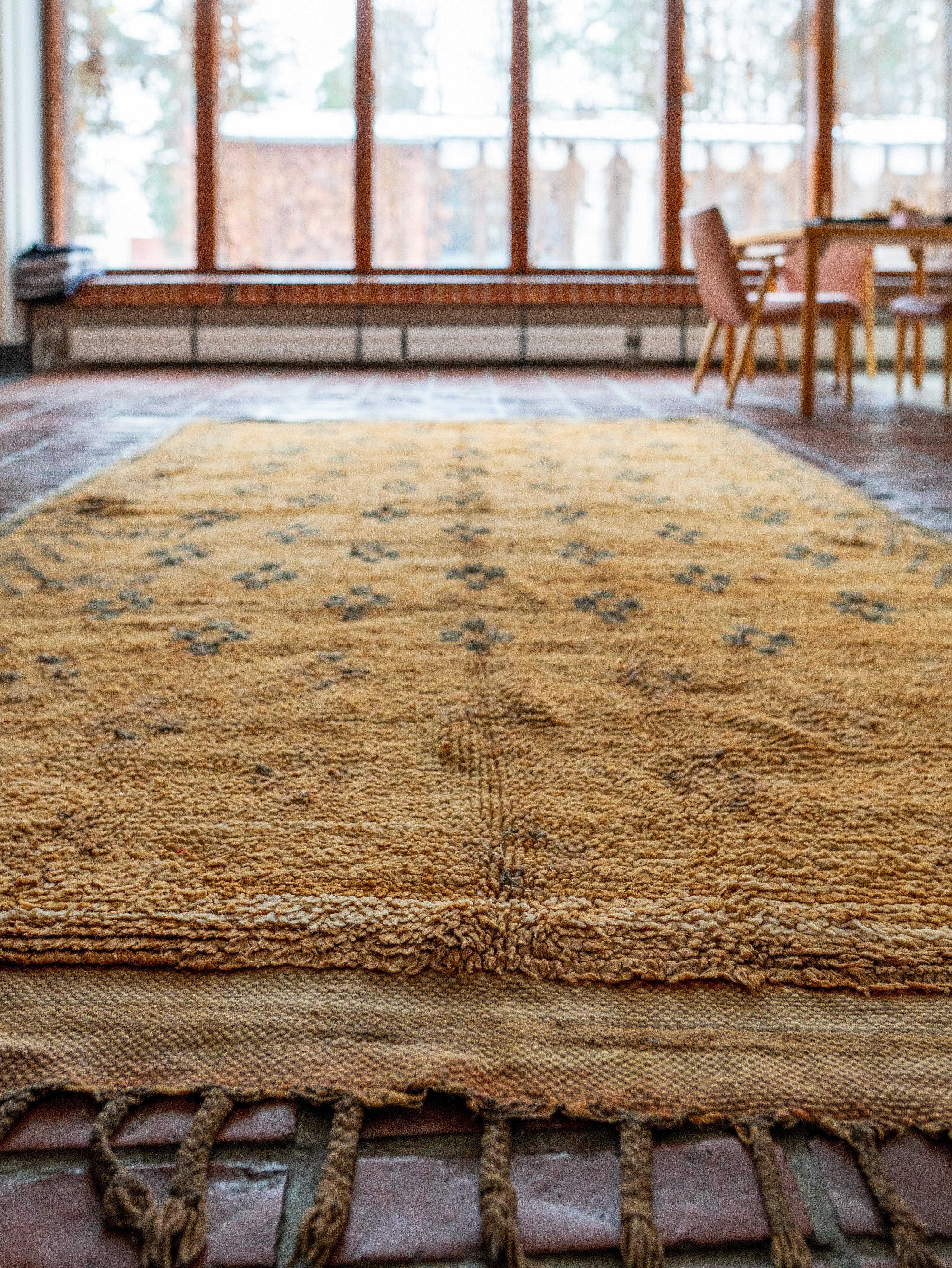 Kaunis ja harmoninen marokkolainen vintagematto Taznakht-heimolta. Matto on säilynyt erinomaisessa kunnossa, ja sen rauhallinen ilme syntyy kultaisen lämpimästä pohjasävystä sekä pehmeän villan eläväisyydestä.