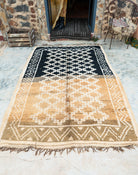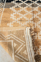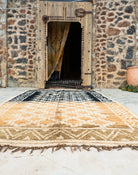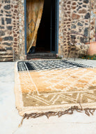 “Soil” on marokkolainen vintagematto Taznakht-heimolta, jossa yhdistyvät hillitty väripaletti ja tasapainoinen kuviointi, mutta vahvat kontrastit.
