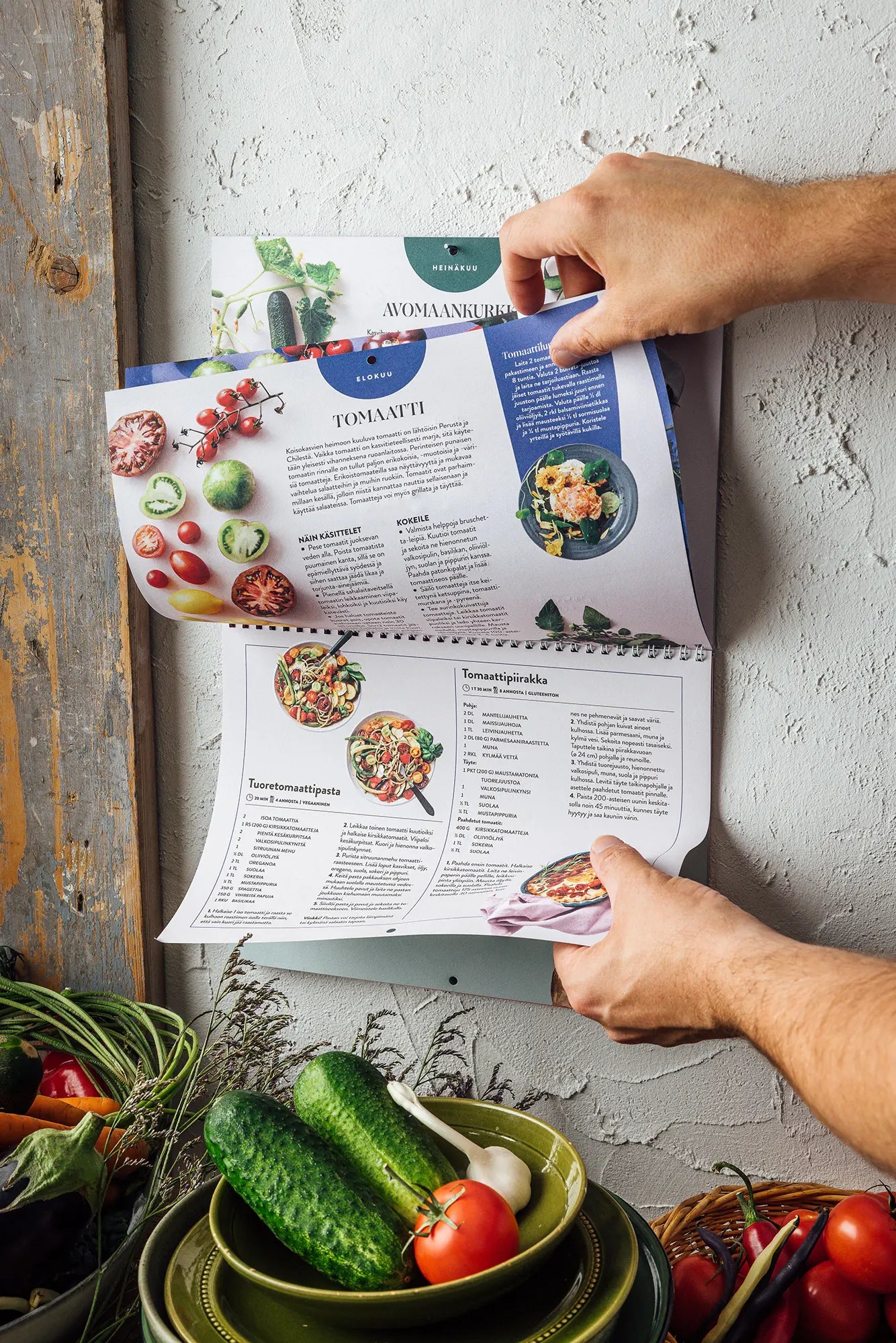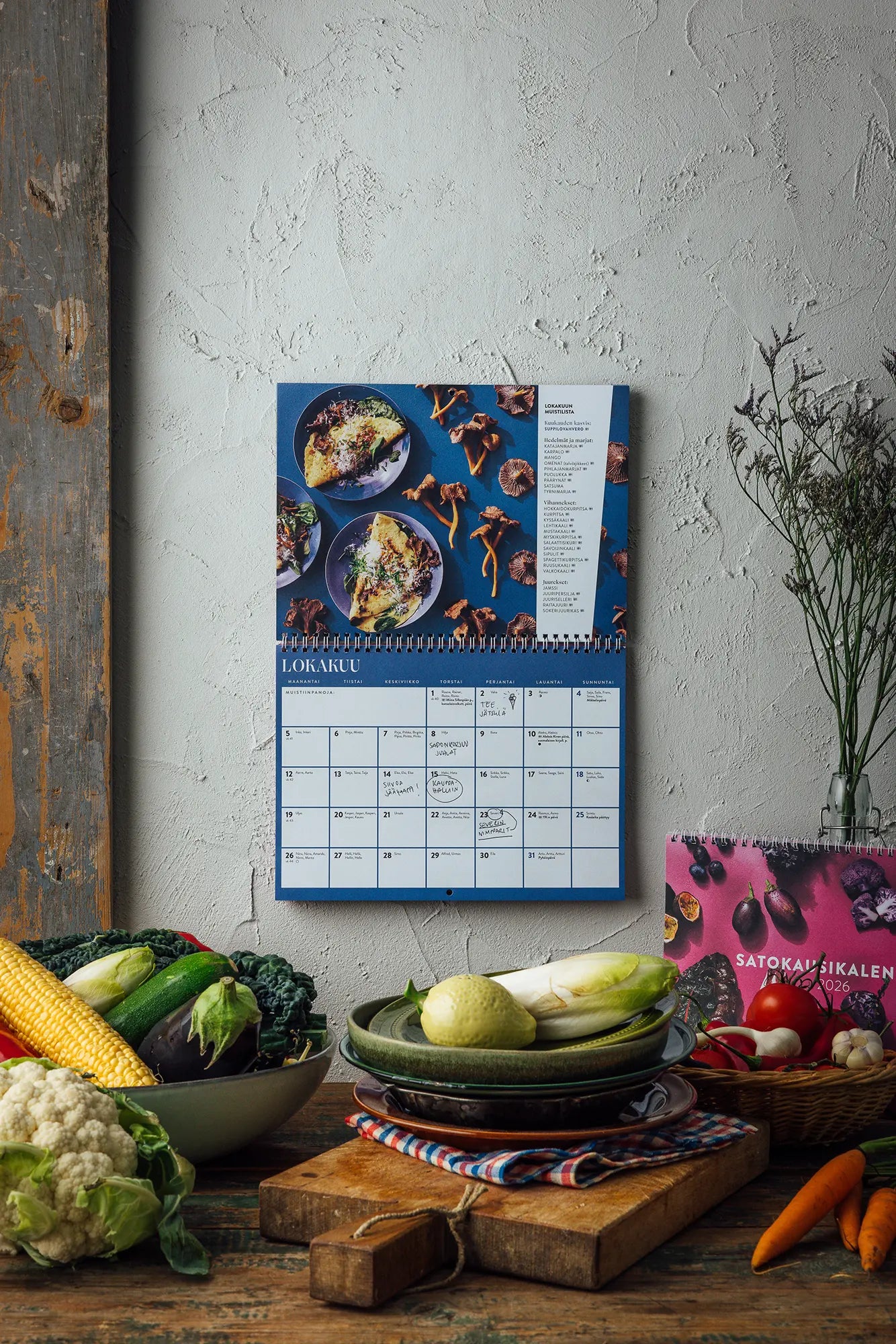Satokausikalenteri 2026 on rakennettu tukevasti kuukauden kasvisten ympärille. Pääset joka kuukausi tutustumaan syvemmin yhteen sesongin kiinnostavimmista kasviksista ja opit käyttämään sitä keittiössäsi. Vuoden kiertoa seuraavasta, alan ammattilaisten laatimasta tieto-osiosta löydät ohjeita ja vinkkejä muun muassa kasvisten paahtamiseen, smoothie-resepteihin, salaatinkastikkeisiin ja kotimaisiin ruokakaloihin.